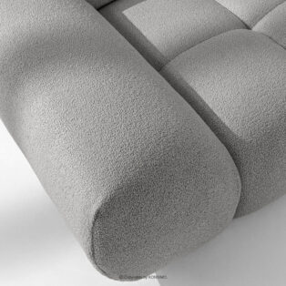 Komfort siedzenia gwarantuje starannie dobrana kombinacja sprężyny falistej typu B oraz wysokiej jakości pianki HR 30/120 o imponującej grubości 12 cm, zastosowana w siedzisku. Oparcie, wypełnione pianką T 23/15 o grubości 12 cm, idealnie dopełnia całość, zapewniając optymalne wsparcie dla pleców. Zaokrąglone podłokietniki, z wypełnieniem z pianki T 25/180 (o grubości 3 cm od góry i 3 cm po bokach), dodają elegancji i stanowią wygodne podparcie dla ramion, podkreślając jej nowoczesny i wyrafinowany charakter. Średniotwarde siedzisko to idealny kompromis między miękkością a stabilnością, zapewniający niezrównany komfort. Co więcej, unikatowa forma mebla jest zachowana również na plecach mebli, co otwiera szerokie możliwości aranżacyjne – prezentują się doskonale zarówno ustawione przy ścianie, jak i jako wolnostojące elementy centralne pomieszczenia.