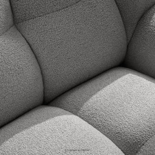 Cała kolekcja VENA emanuje jakością premium, widoczną w każdym szczególe – od solidnego szycia po dopracowane detale. Kluczowym elementem, który wyróżnia meble VENA, jest zastosowanie luksusowej tkaniny boucle. Materiał ten nie tylko zachwyca swoją fakturą i przyjemnością w dotyku, ale również jest niezwykle praktyczny w codziennym użytkowaniu. Tkanina boucle z kolekcji VENA charakteryzuje się łatwością czyszczenia, co jest nieocenione w przypadku drobnych zabrudzeń. Dodatkowo, posiada ona właściwości water repellent, co oznacza utrudnione wchłanianie płynów, dając czas na szybkie usunięcie rozlanych płynów. Wysoka odporność na mechacenie gwarantuje, że meble VENA zachowają swój estetyczny wygląd przez długi czas, nawet przy intensywnym użytkowaniu. Co równie ważne, tkanina boucle spełnia rygorystyczne wymogi Standardu OECOTEX, co potwierdza jej bezpieczeństwo dla zdrowia i środowiska, a także brak szkodliwych substancji. Ekskluzywny charakter kolekcji VENA podkreśla jej unikatowy design, który został nie tylko opatentowany, ale również zarejestrowany jako znak towarowy. To potwierdzenie oryginalności i wyjątkowości tych mebli na rynku.