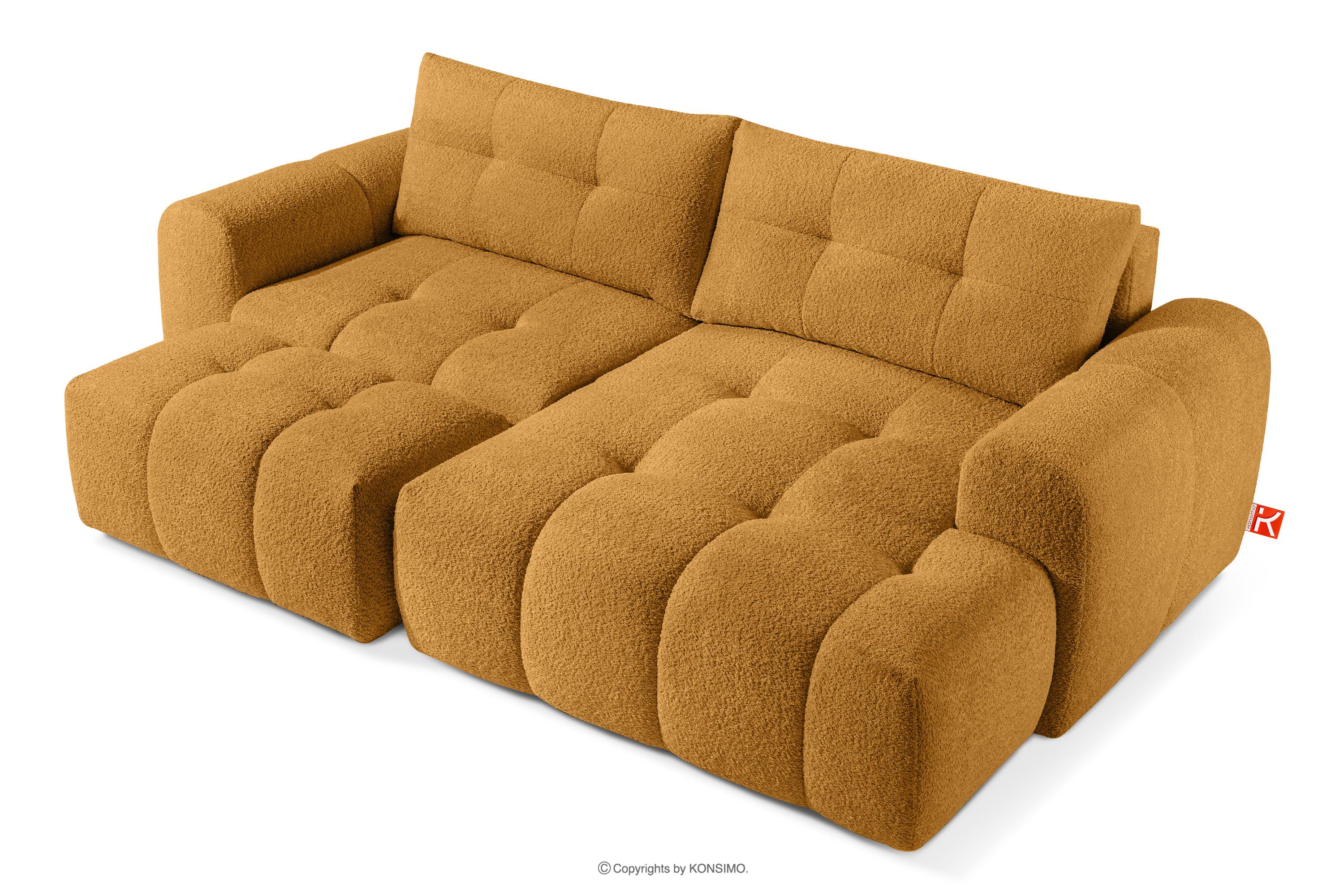 Narożnik z pikowaniem w stylu japandi boucle prawy miodowy RAVIA - kolor miodowy