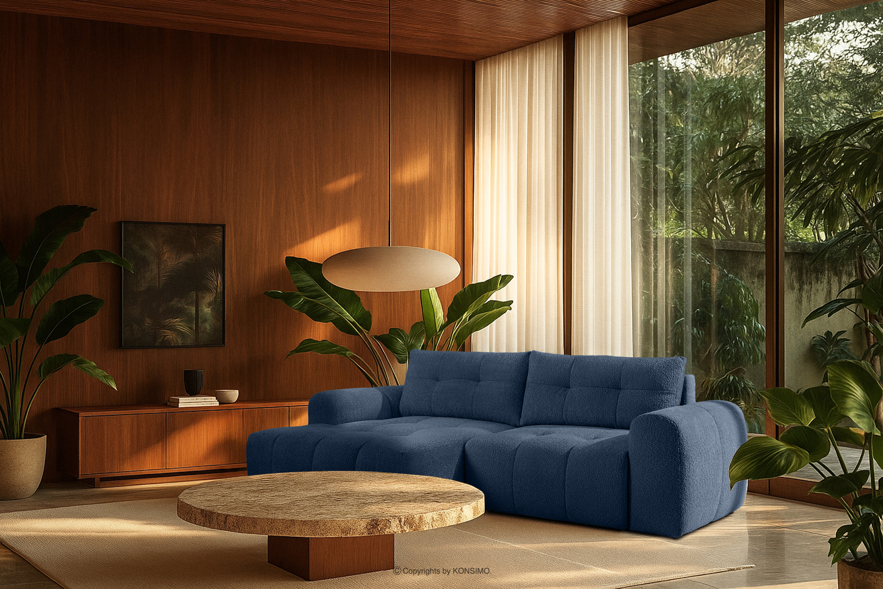 RAVIA zobacz całą kolekcję Narożnik z pikowaniem w stylu japandi boucle lewy granatowy- kolor granatowy