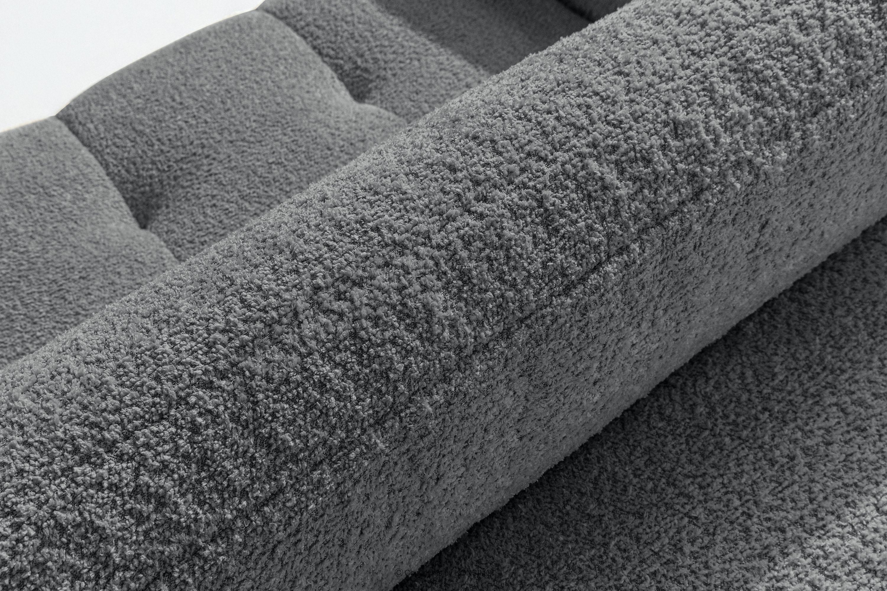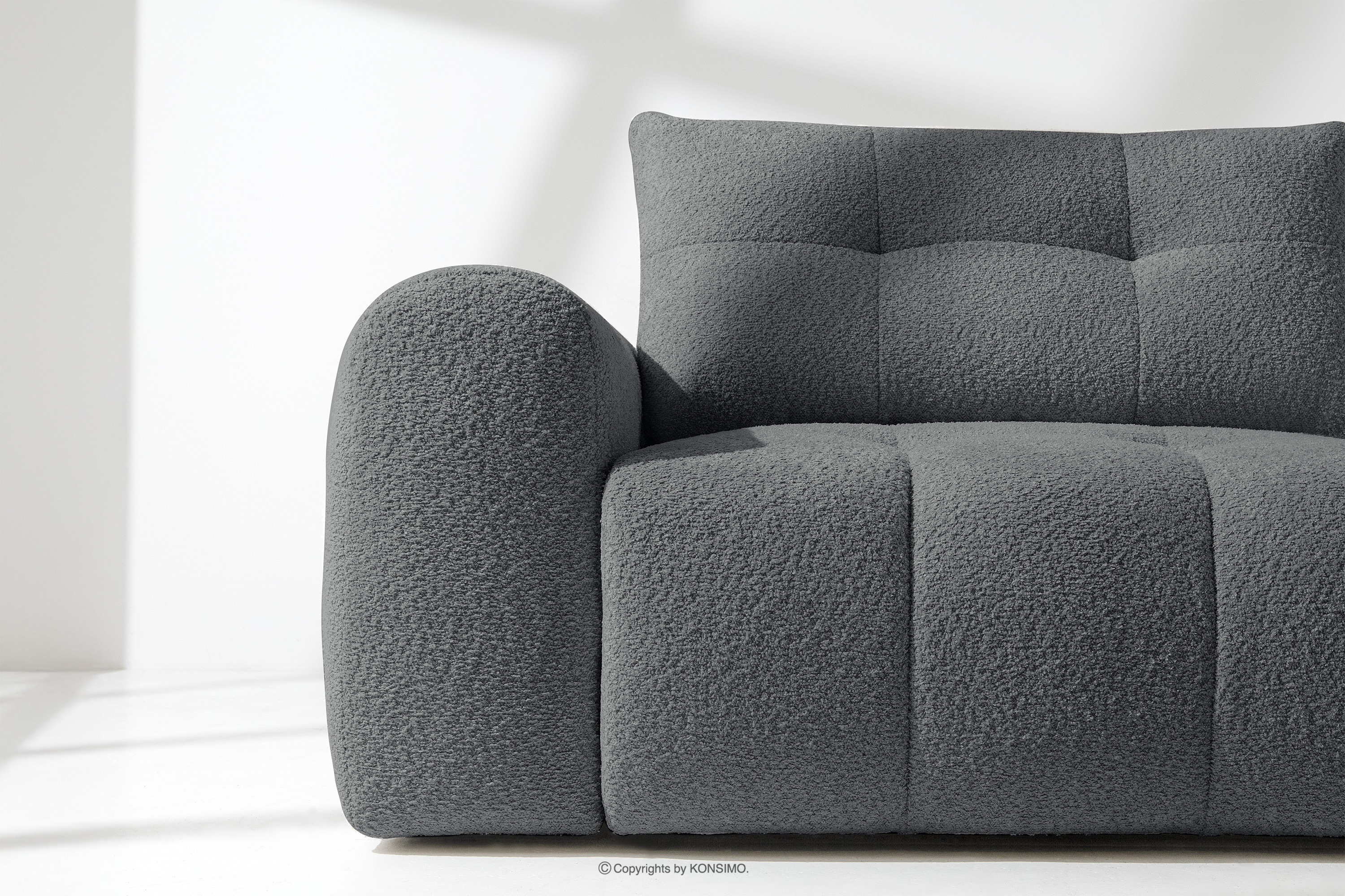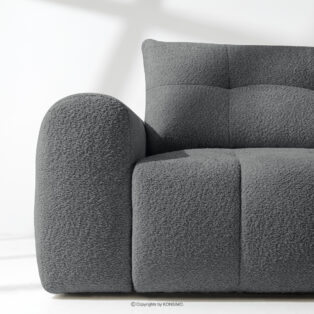Zestaw wypoczynkowy w stylu japandi boucle ciemny szary łączy w sobie surową elegancję japońskiego designu z przytulnym minimalizmem skandynawskich wnętrz. Tapicerowana wyjątkową tkaniną boucle, która nie tylko zachwyca swoją fakturą i miękkością, ale również dodaje meblom luksusowego charakteru, kolekcja LIRA wnosi do każdego pomieszczenia poczucie spokoju i harmonii. Subtelne, nierównomierne sploty boucle tworzą na powierzchni mebli delikatne wzory, które pięknie odbijają światło, podkreślając głębię koloru i dodając meblom unikalnego, rzemieślniczego wyglądu.