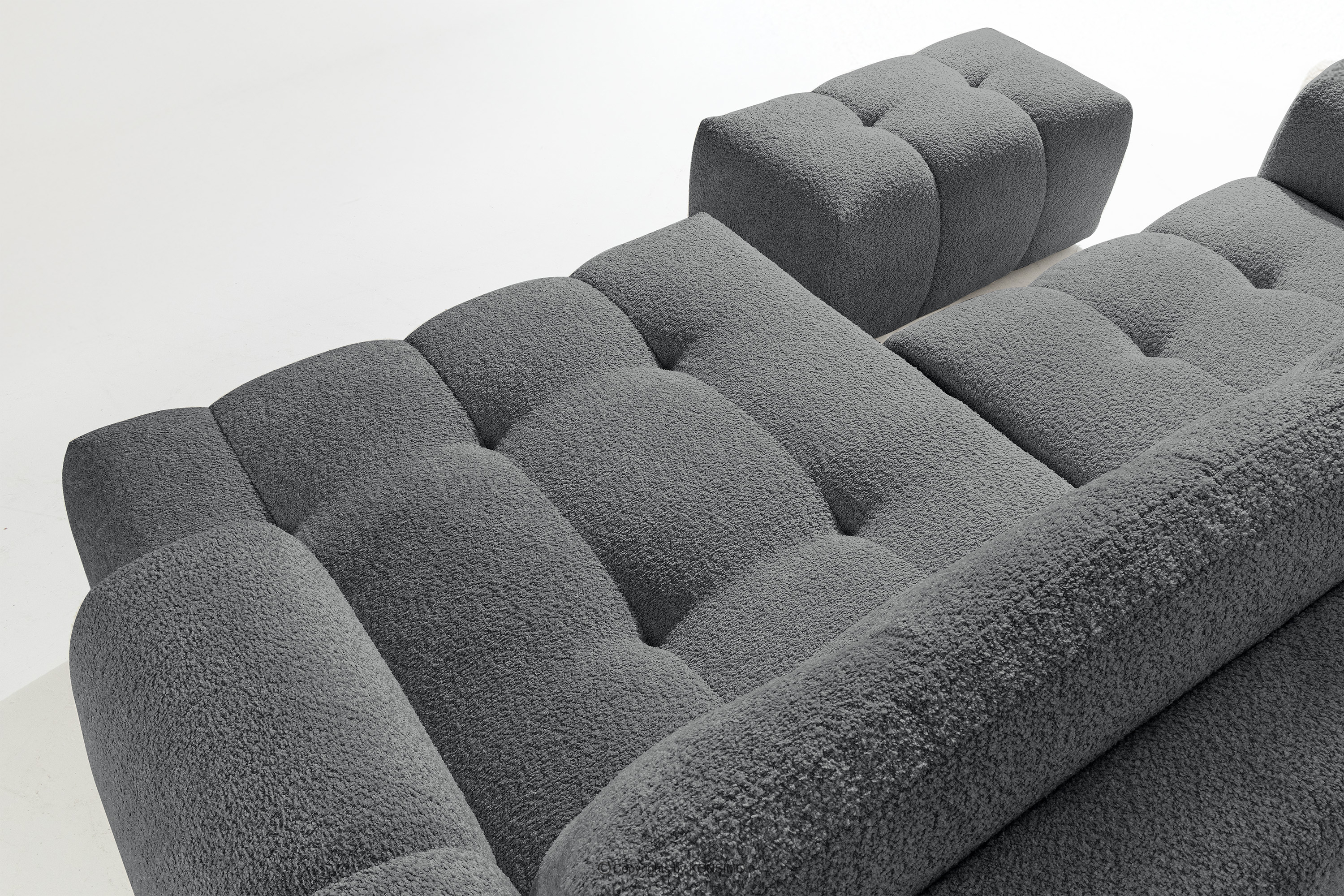 RAVIA zobacz całą kolekcję Zestaw wypoczynkowy w stylu japandi boucle ciemny szary- kolor ciemny szary