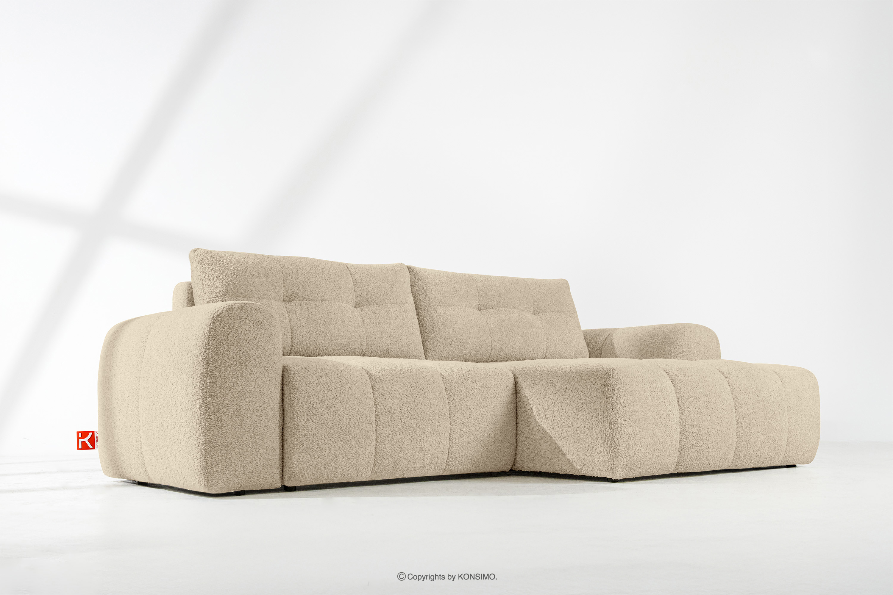 Zestaw wypoczynkowy w stylu japandi boucle jasny beżowy łączy w sobie surową elegancję japońskiego designu z przytulnym minimalizmem skandynawskich wnętrz. Tapicerowana wyjątkową tkaniną boucle, która nie tylko zachwyca swoją fakturą i miękkością, ale również dodaje meblom luksusowego charakteru, kolekcja RAVIA wnosi do każdego pomieszczenia poczucie spokoju i harmonii. Subtelne, nierównomierne sploty boucle tworzą na powierzchni mebli delikatne wzory, które pięknie odbijają światło, podkreślając głębię koloru i dodając meblom unikalnego, rzemieślniczego wyglądu.
