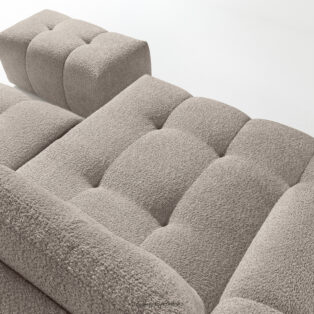 Zestaw wypoczynkowy do salonu w stylu japandi boucle szary łączy w sobie surową elegancję japońskiego designu z przytulnym minimalizmem skandynawskich wnętrz. Tapicerowana wyjątkową tkaniną boucle, która nie tylko zachwyca swoją fakturą i miękkością, ale również dodaje meblom luksusowego charakteru, kolekcja RAVIA wnosi do każdego pomieszczenia poczucie spokoju i harmonii. Subtelne, nierównomierne sploty boucle tworzą na powierzchni mebli delikatne wzory, które pięknie odbijają światło, podkreślając głębię koloru i dodając meblom unikalnego, rzemieślniczego wyglądu.