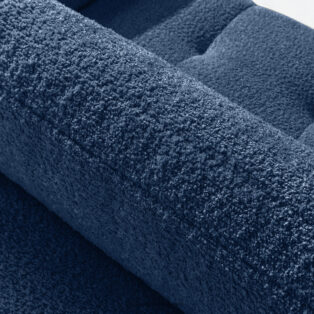 Zestaw wypoczynkowy do salonu w stylu japandi boucle granatowy łączy w sobie surową elegancję japońskiego designu z przytulnym minimalizmem skandynawskich wnętrz. Tapicerowana wyjątkową tkaniną boucle, która nie tylko zachwyca swoją fakturą i miękkością, ale również dodaje meblom luksusowego charakteru, kolekcja RAVIA wnosi do każdego pomieszczenia poczucie spokoju i harmonii. Subtelne, nierównomierne sploty boucle tworzą na powierzchni mebli delikatne wzory, które pięknie odbijają światło, podkreślając głębię koloru i dodając meblom unikalnego, rzemieślniczego wyglądu.