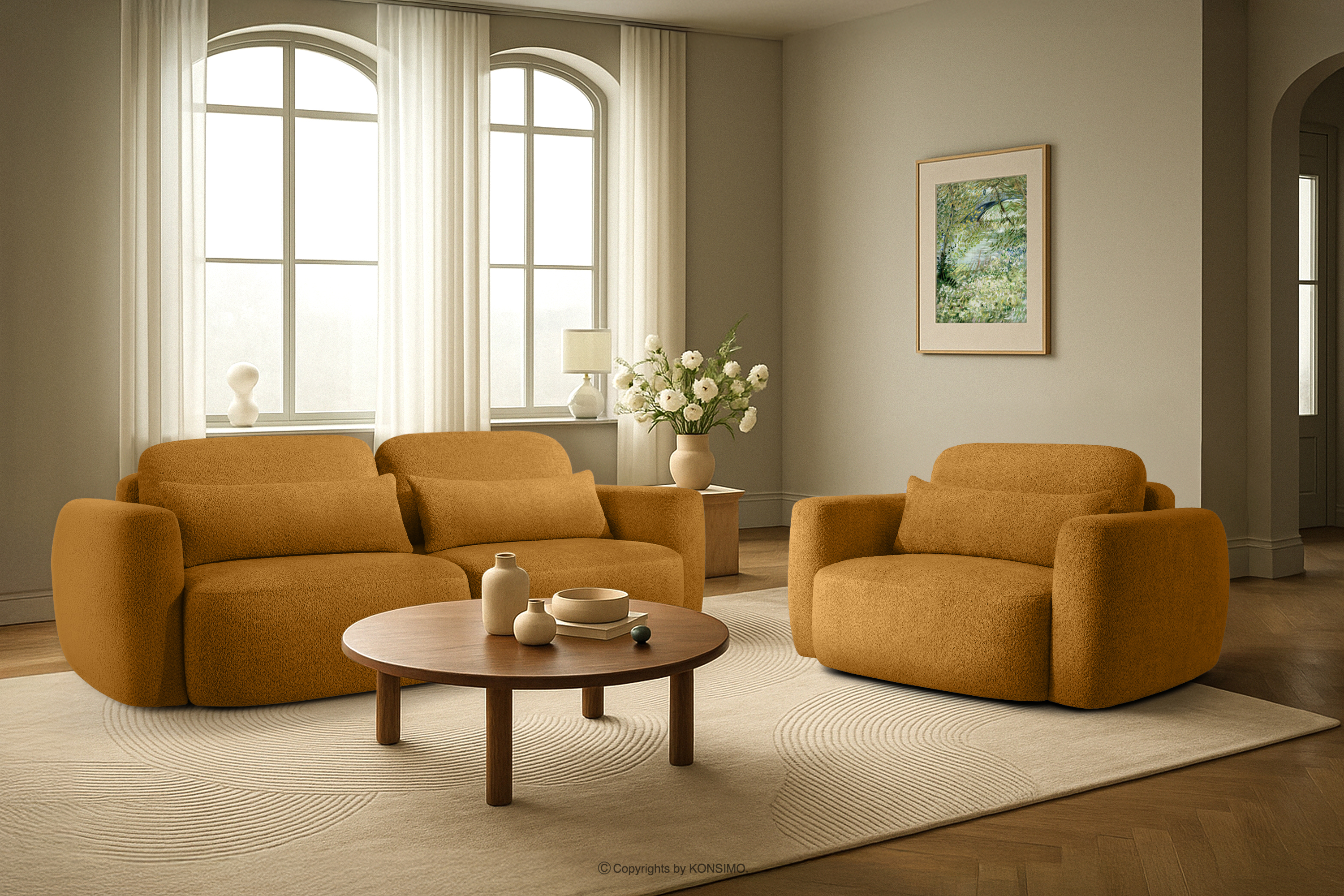 ELOSA zobacz całą kolekcję Fotel w stylu japońskim w tkaninie boucle miodowy- kolor miodowy