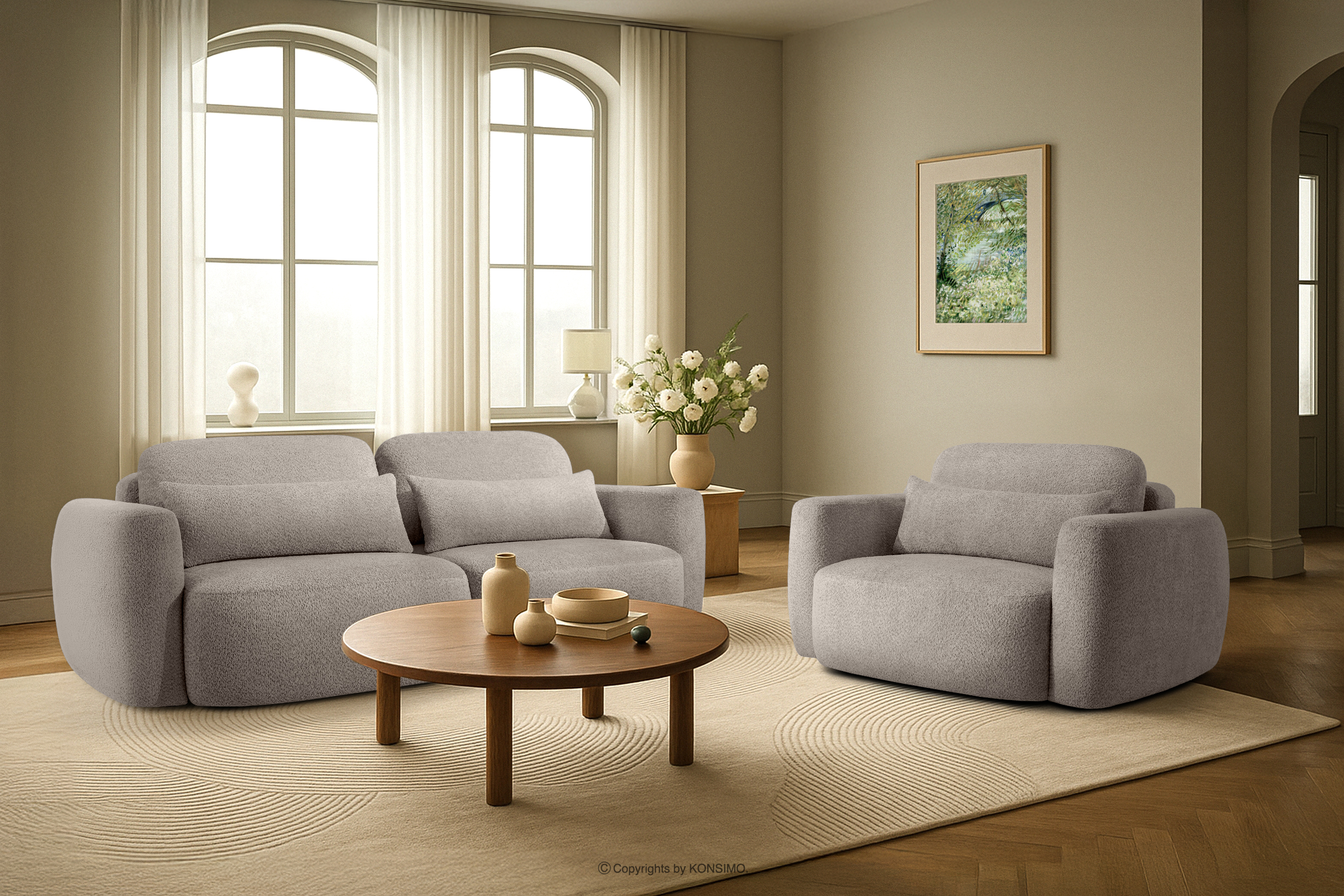 dla produktu Sofa 3 japandi w tkaninie boucle szary