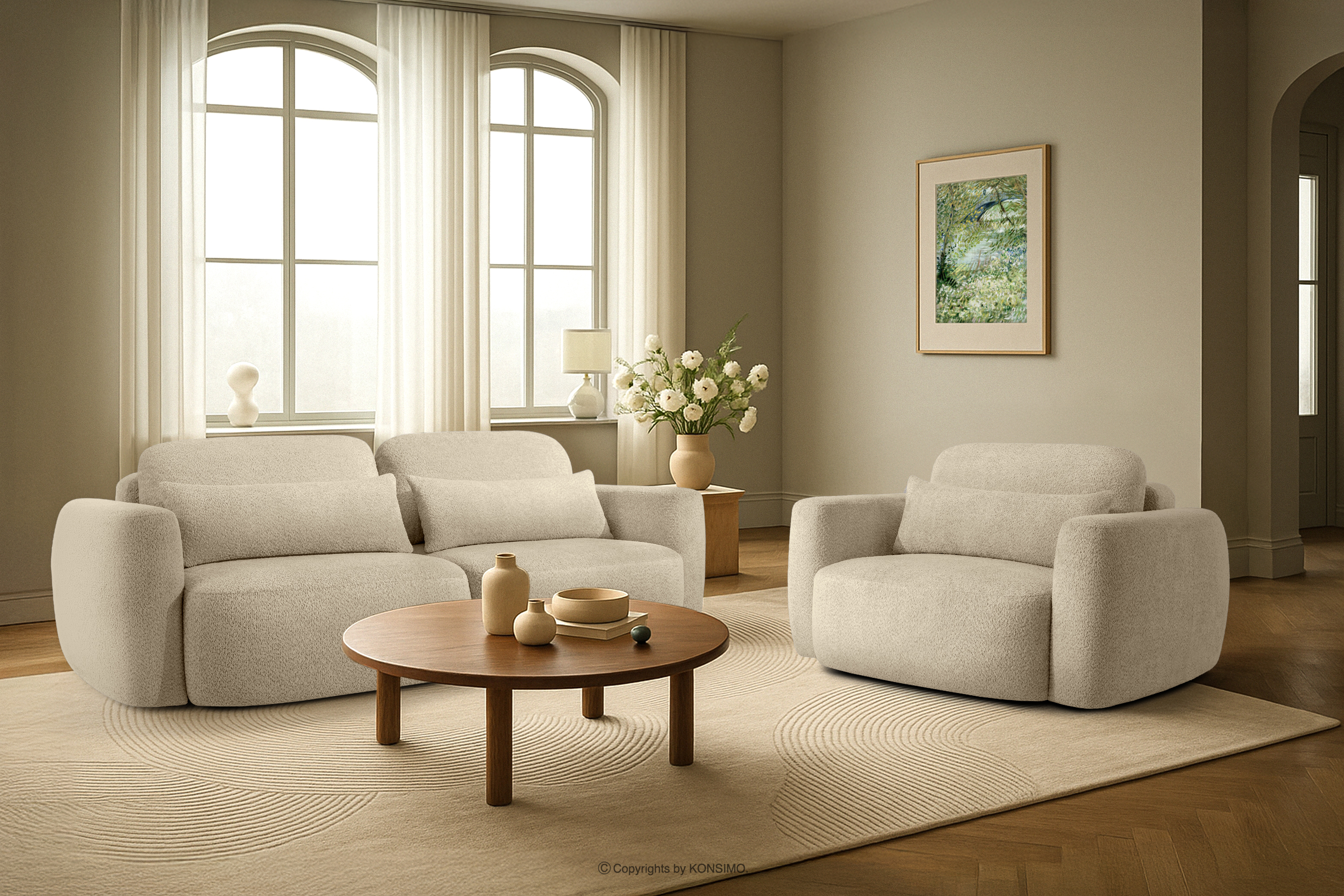 dla produktu Sofa 3 japandi w tkaninie boucle jasny beżowy