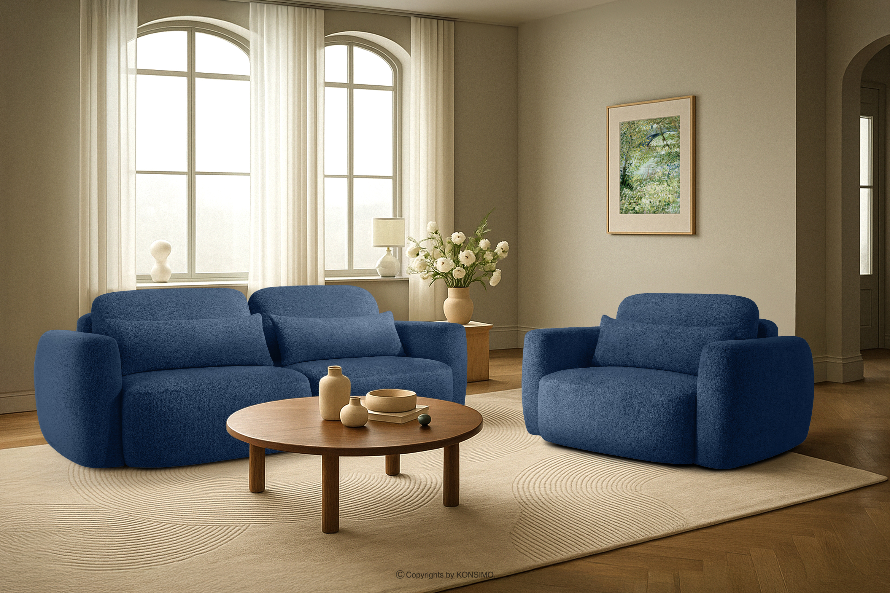 ELOSA zobacz całą kolekcję Sofa trzyosobowa w stylu japońskim w tkaninie boucle granatowy- kolor granatowy