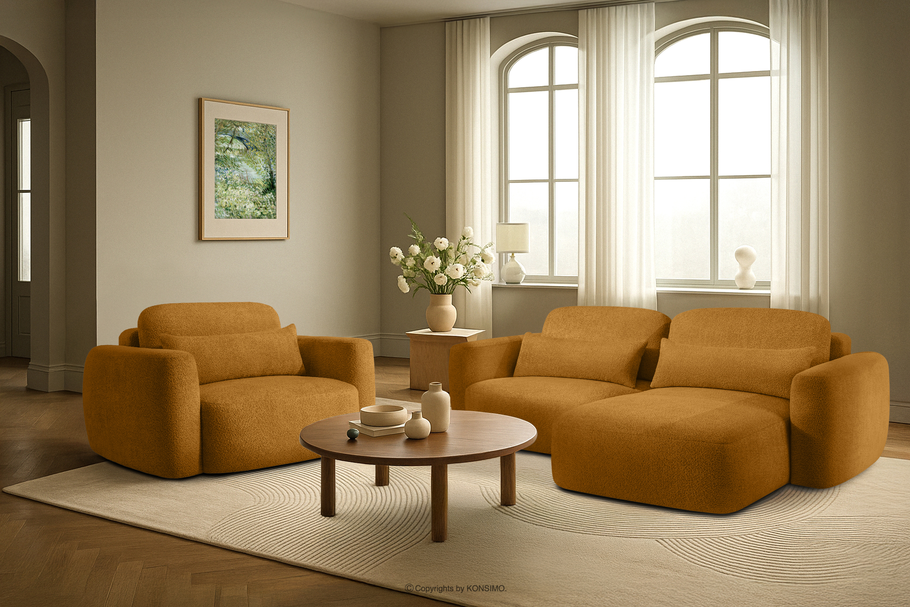 ELOSA zobacz całą kolekcję Narożnik w stylu japońskim w tkaninie boucle prawy miodowy- kolor miodowy