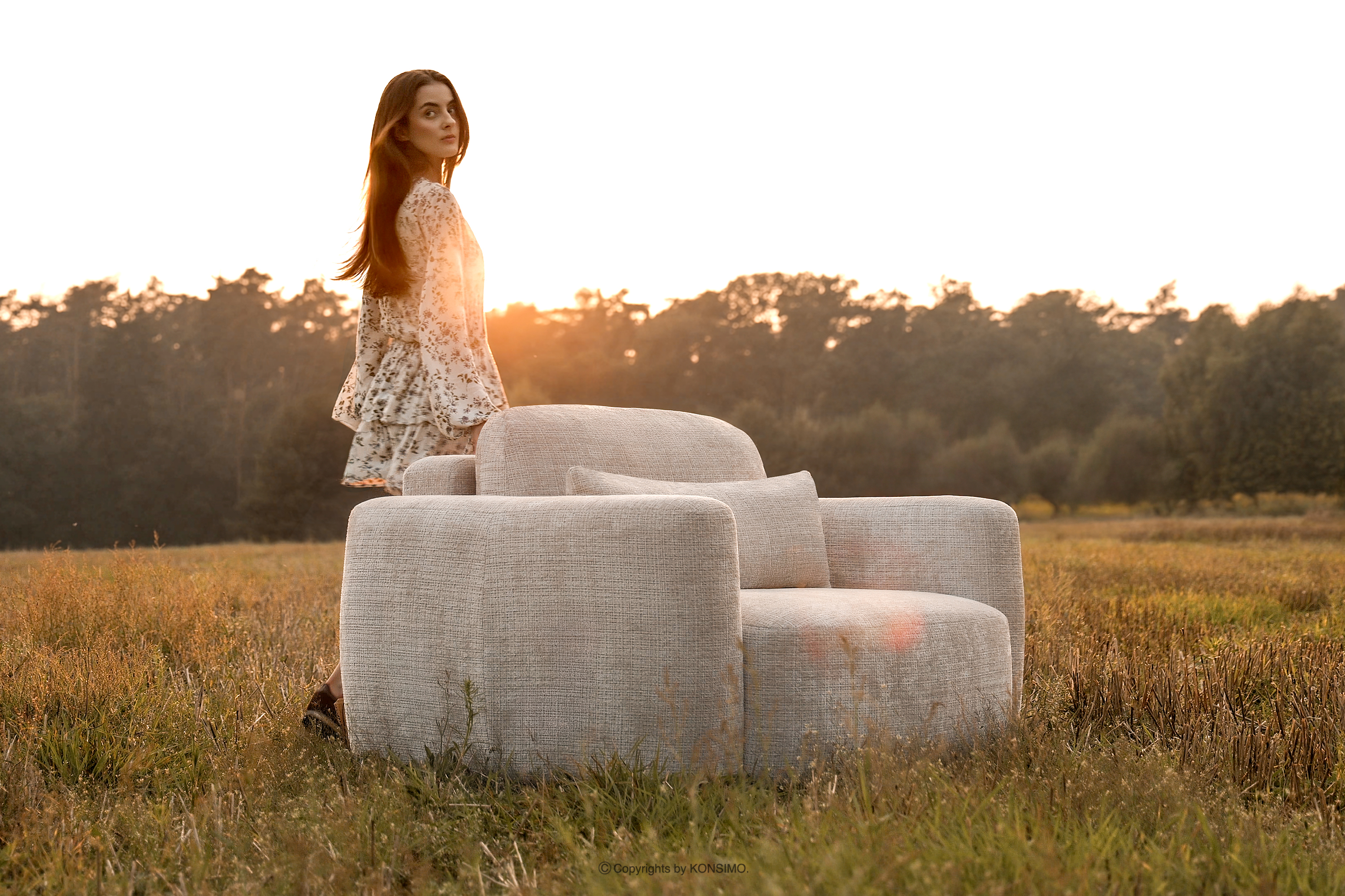 To połączenie gwarantuje idealne dopasowanie do sylwetki, minimalizując punkty nacisku i zapewniając relaks na najwyższym poziomie. Co więcej, każdy element pianki jest precyzyjnie formowany i docinany ręcznie – to pracochłonna technologia z dbałością o detale, która nie tylko podkreśla unikatowość każdego mebla, ale także gwarantuje zachowanie jego perfekcyjnego kształtu przez długie lata. Zapomnij o odkształceniach – ten mebel to inwestycja w trwały komfort i estetykę. Duża głębokość siedziska tego fotela przekłada się na imponującą powierzchnię spania, czyniąc ją idealnym rozwiązaniem dla niespodziewanych gości lub jako dodatkowe miejsce do wypoczynku w nocy. Co ważne, poduszki zostały zaprojektowane tak, aby można było ich używać zarówno w wersji wypoczynkowej, jak i do spania, gwarantując komfortowy sen.