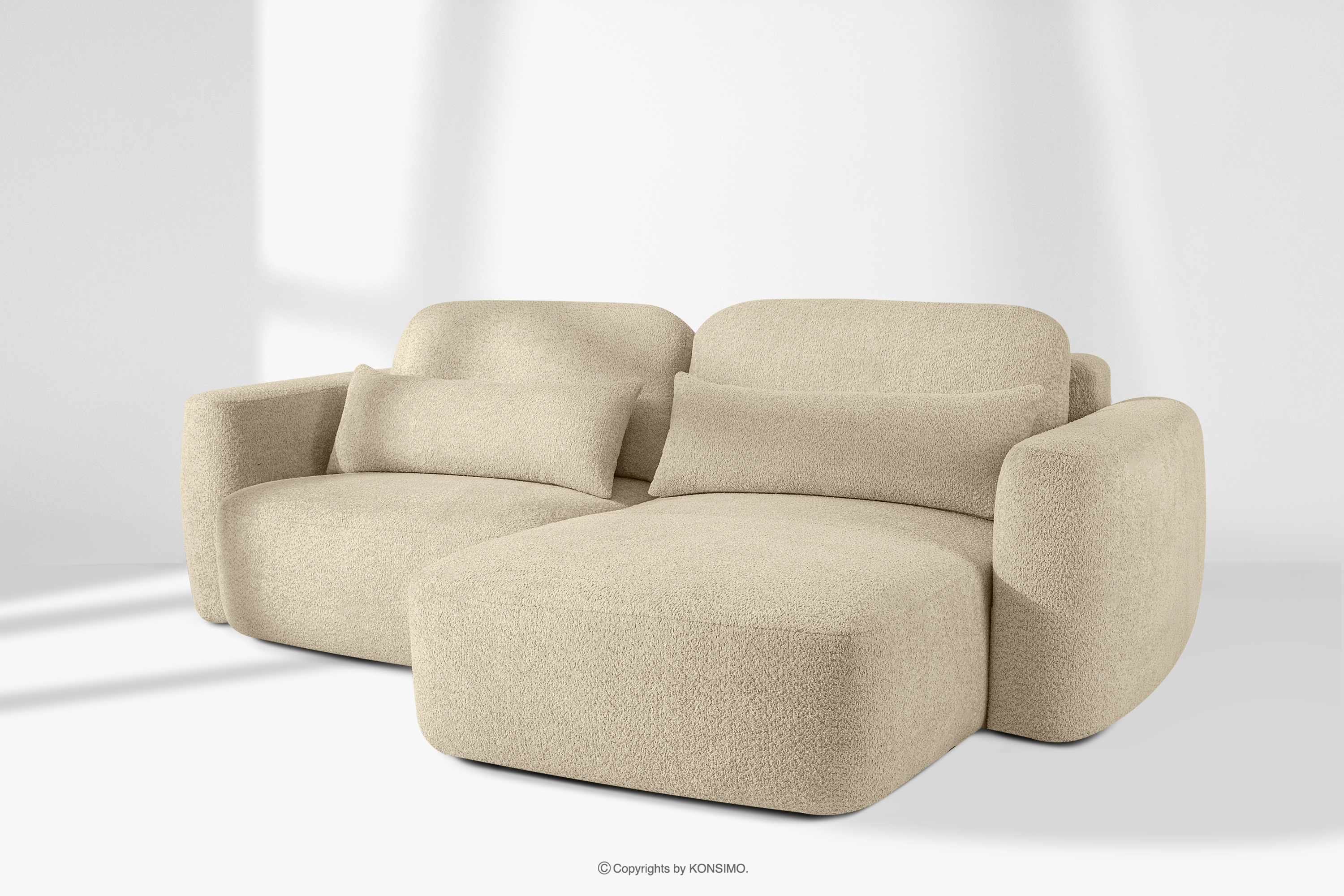 dla produktu Narożnik japandi w tkaninie boucle prawy jasny beżowy