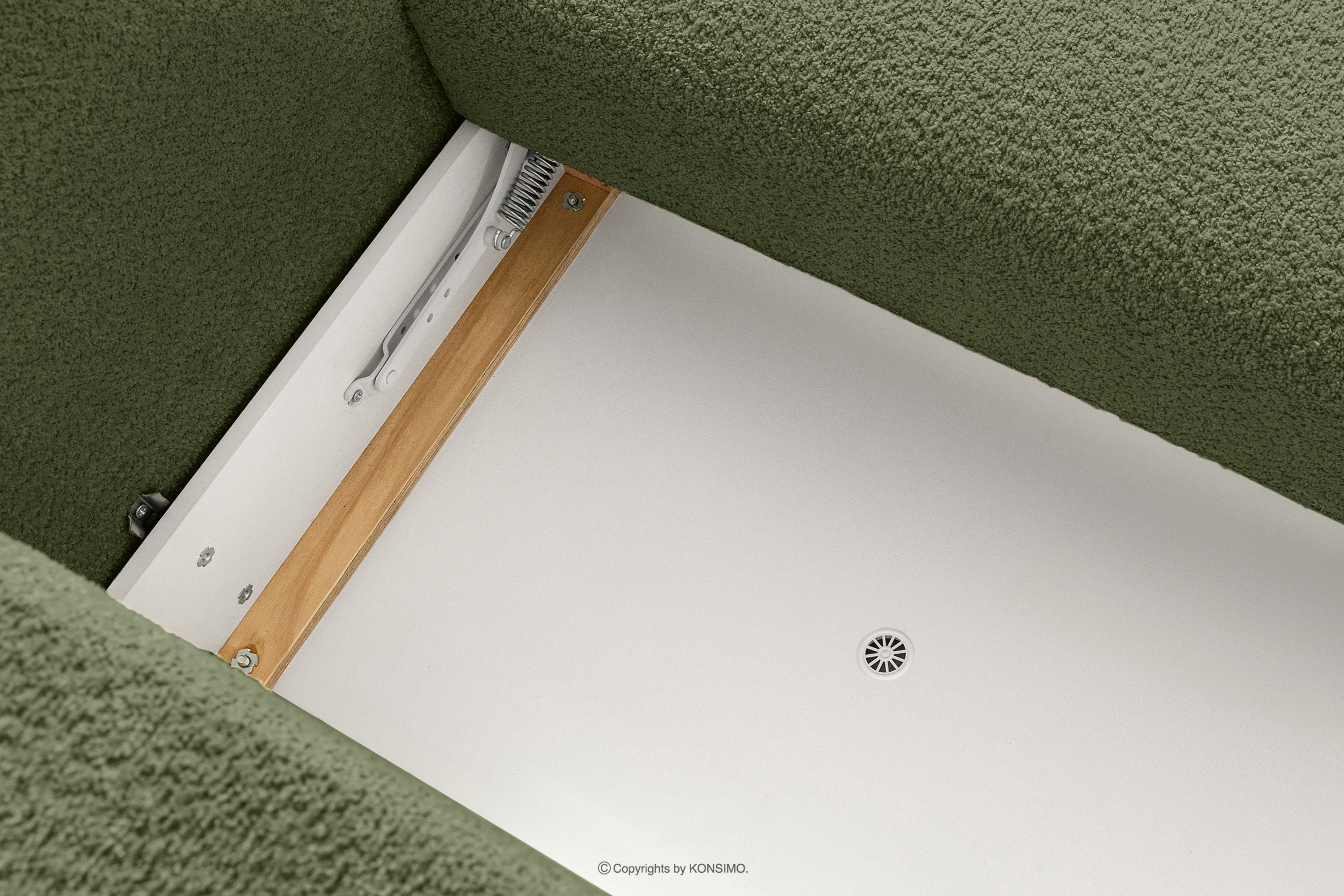 Narożnik w stylu japońskim w tkaninie boucle lewy oliwkowy rewolucjonizuje pojęcie wypoczynku. Sercem jest innowacyjne siedzisko, którego unikalny, wypukły kształt półksiężyca nie tylko przyciąga wzrok, ale przede wszystkim zapewnia niezrównany komfort. Dzięki zastosowaniu sprężyn falistych typu B oraz wysokiej jakości pianki HR30, siedzisko jest średniotwarde, a jednocześnie niezwykle elastyczne i miękkie.