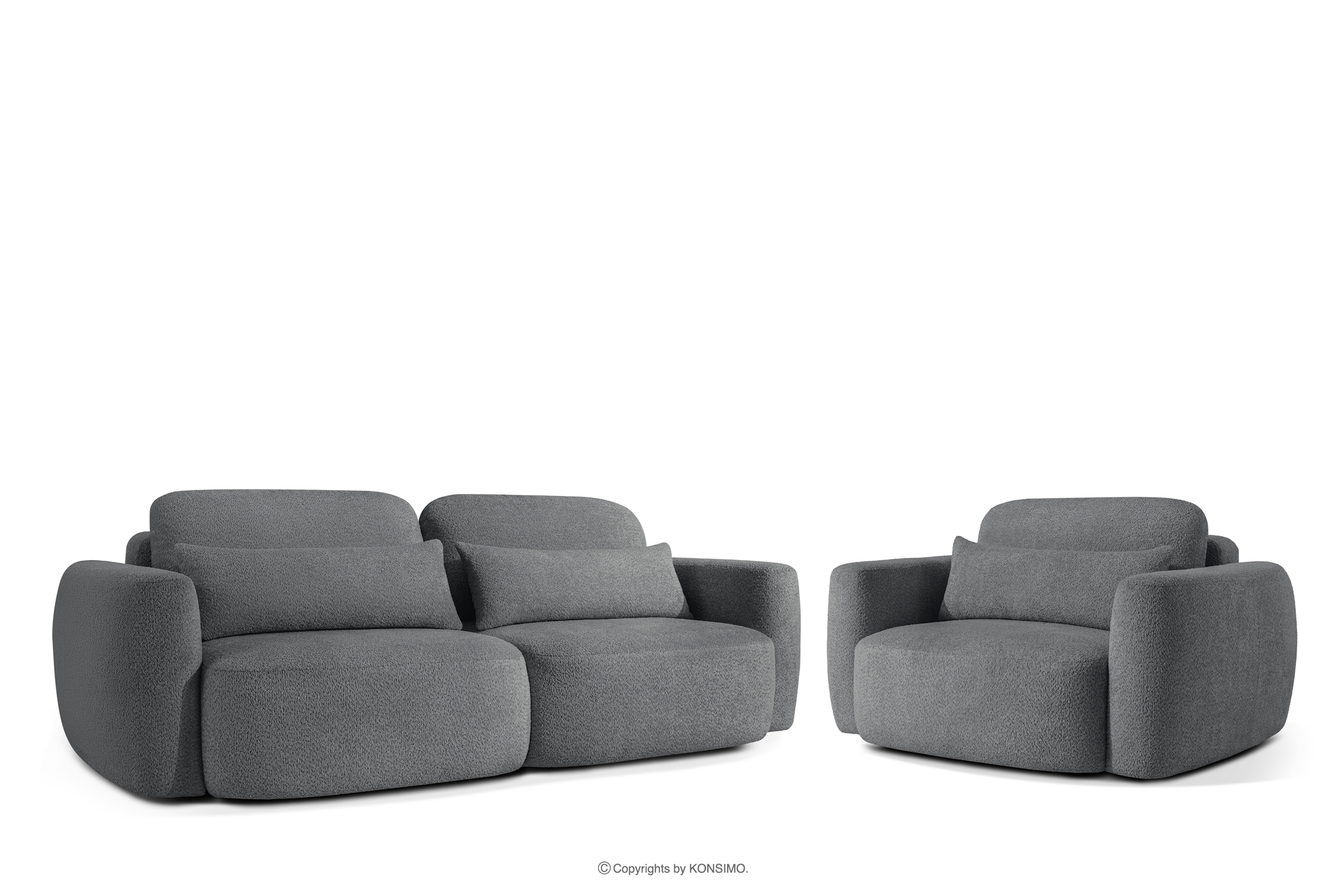 Sofa i fotel w stylu japońskim w tkaninie boucle ciemny szary ELOSA - kolor ciemny szary