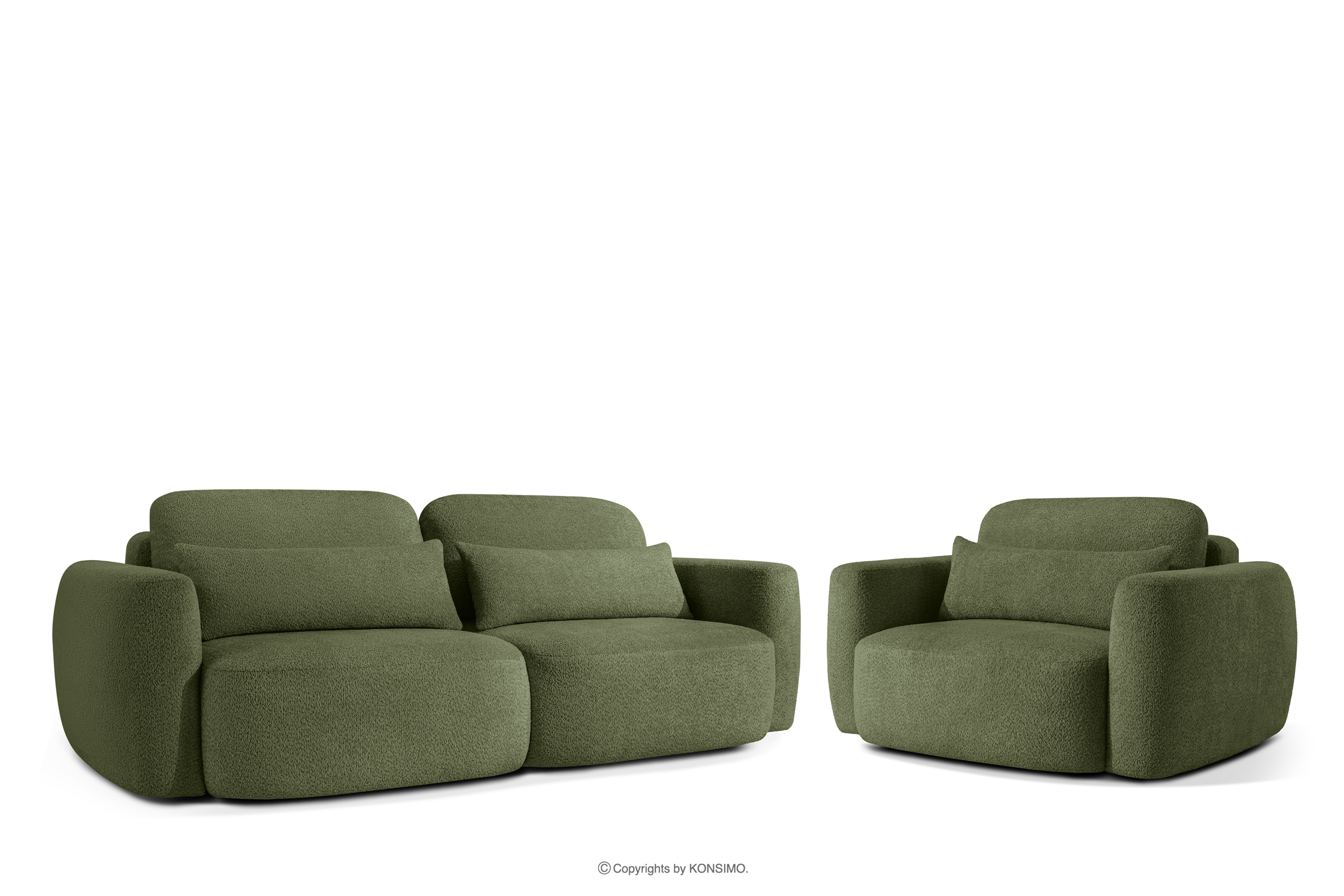 dla produktu Sofa i fotel w stylu japońskim w tkaninie boucle oliwkowy