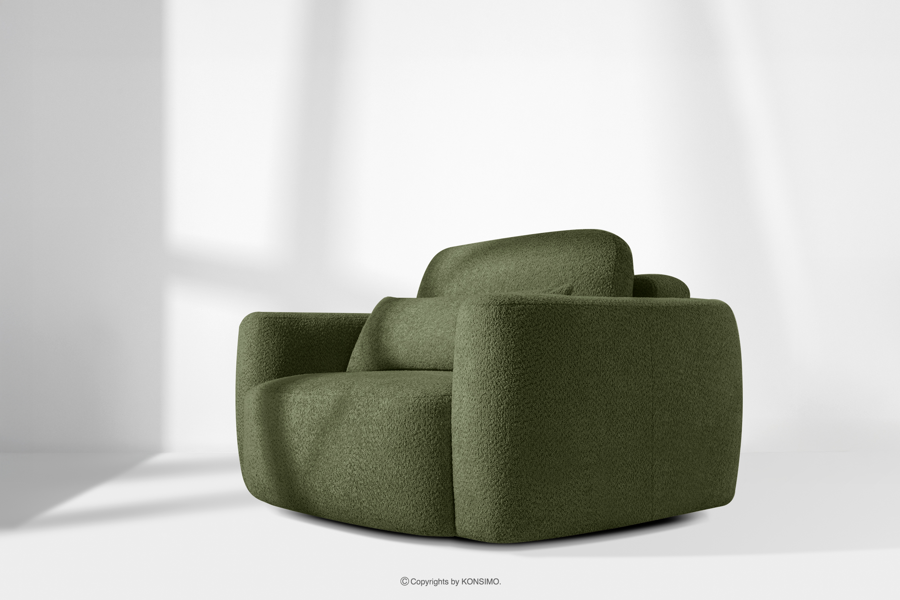 ELOSA zobacz całą kolekcję Sofa i fotel w stylu japońskim w tkaninie boucle oliwkowy- kolor oliwkowy