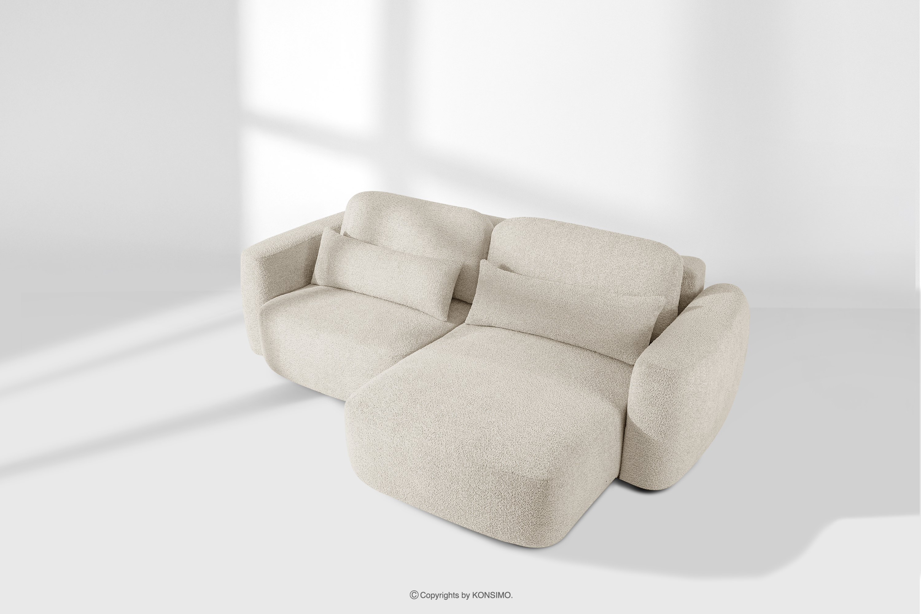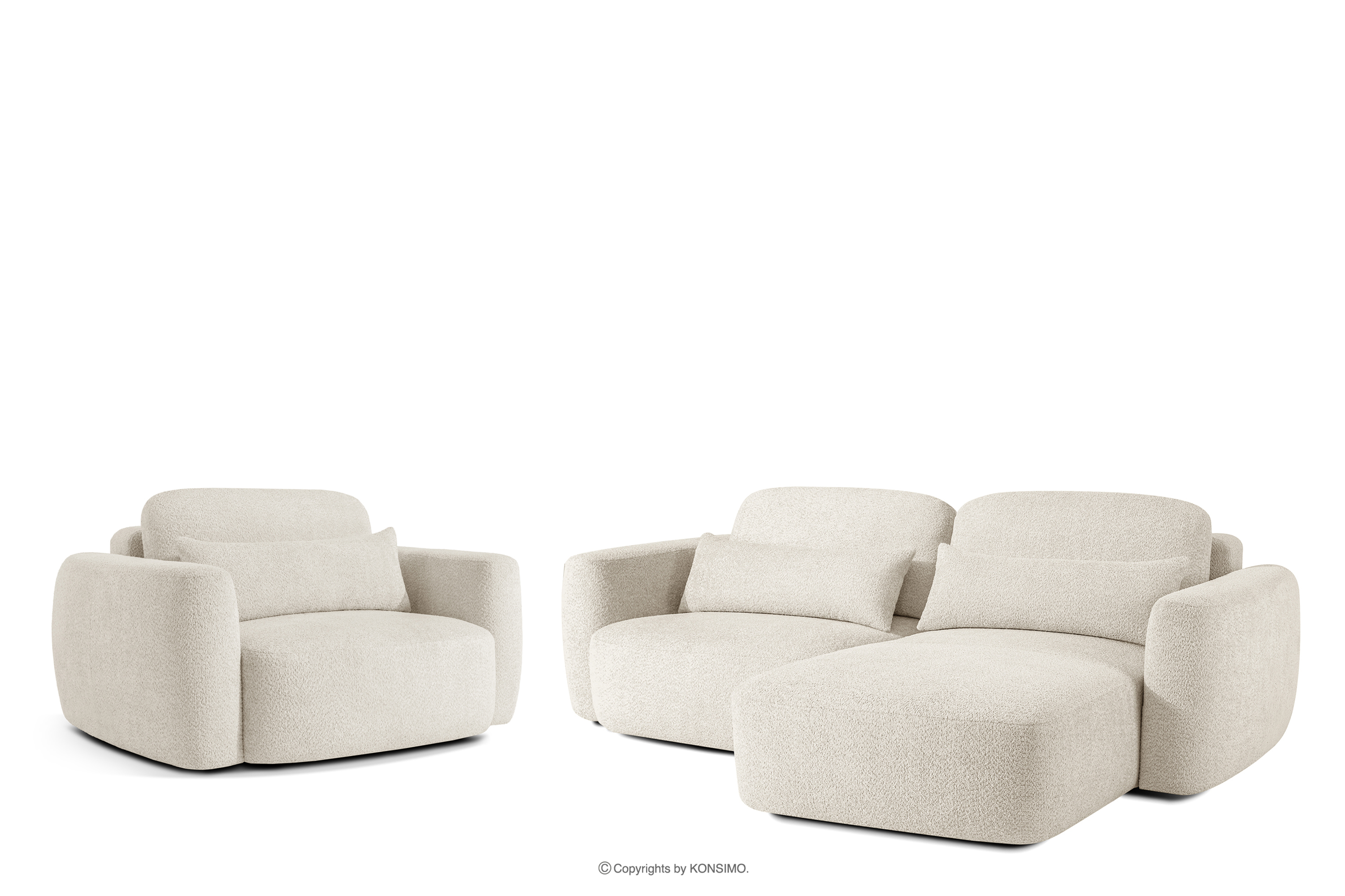 ELOSA zobacz całą kolekcję Narożnik prawy i fotel w stylu japandi boucle biały- kolor biały