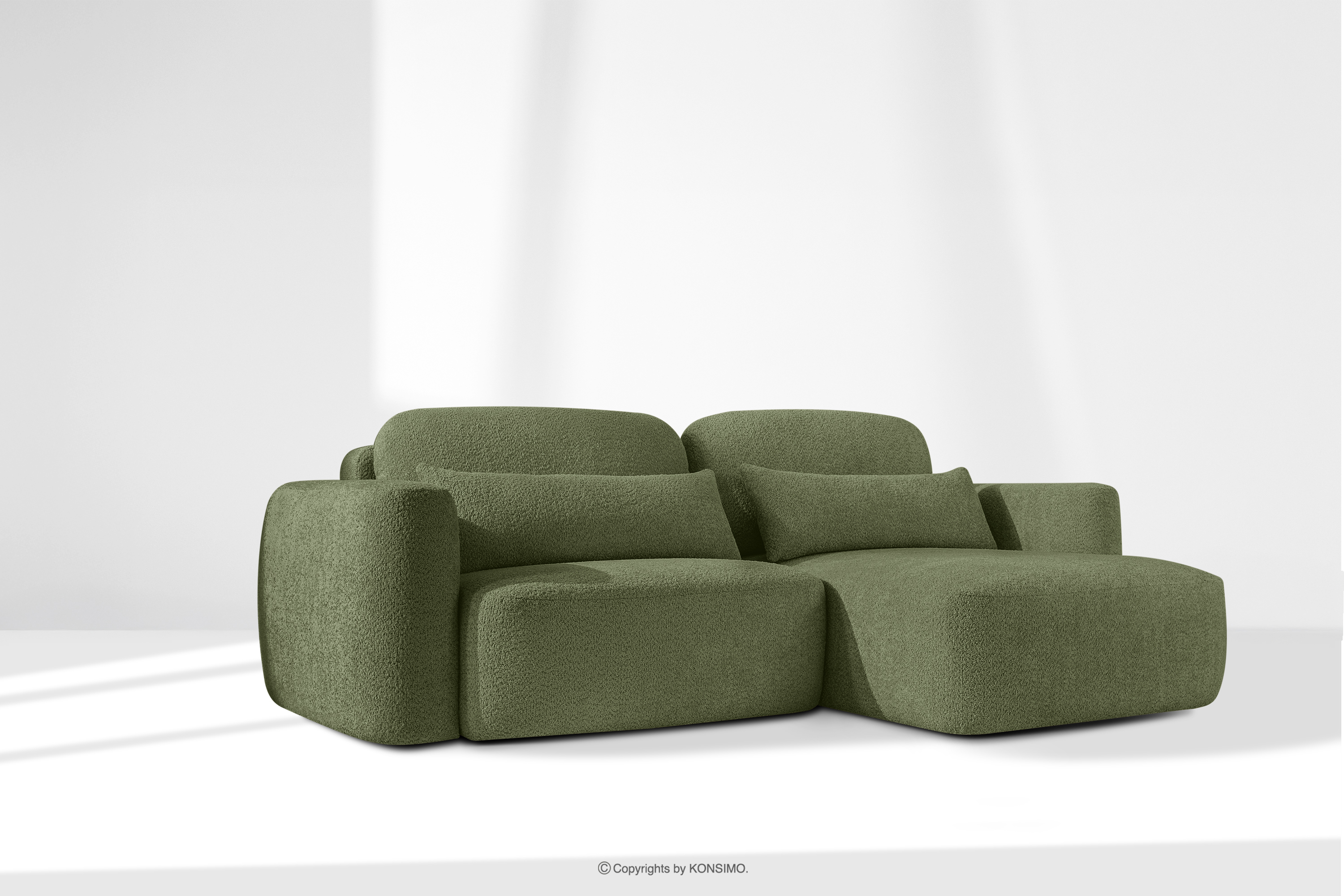 Narożnik prawy i fotel w stylu japońskim boucle oliwkowy ELOSA - kolor oliwkowy