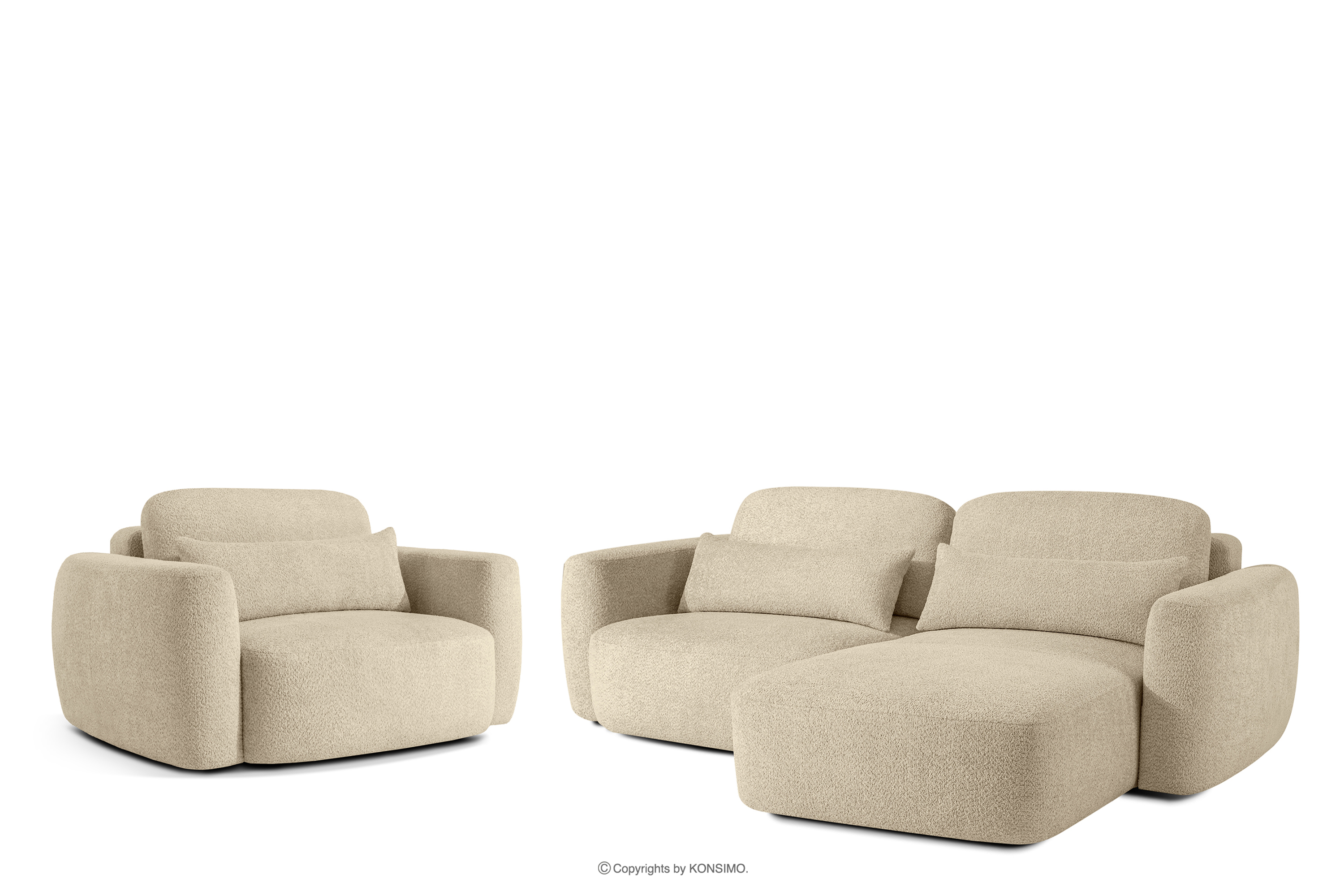 ELOSA zobacz całą kolekcję Narożnik prawy i fotel w stylu japandi boucle jasny beżowy- kolor jasny beżowy