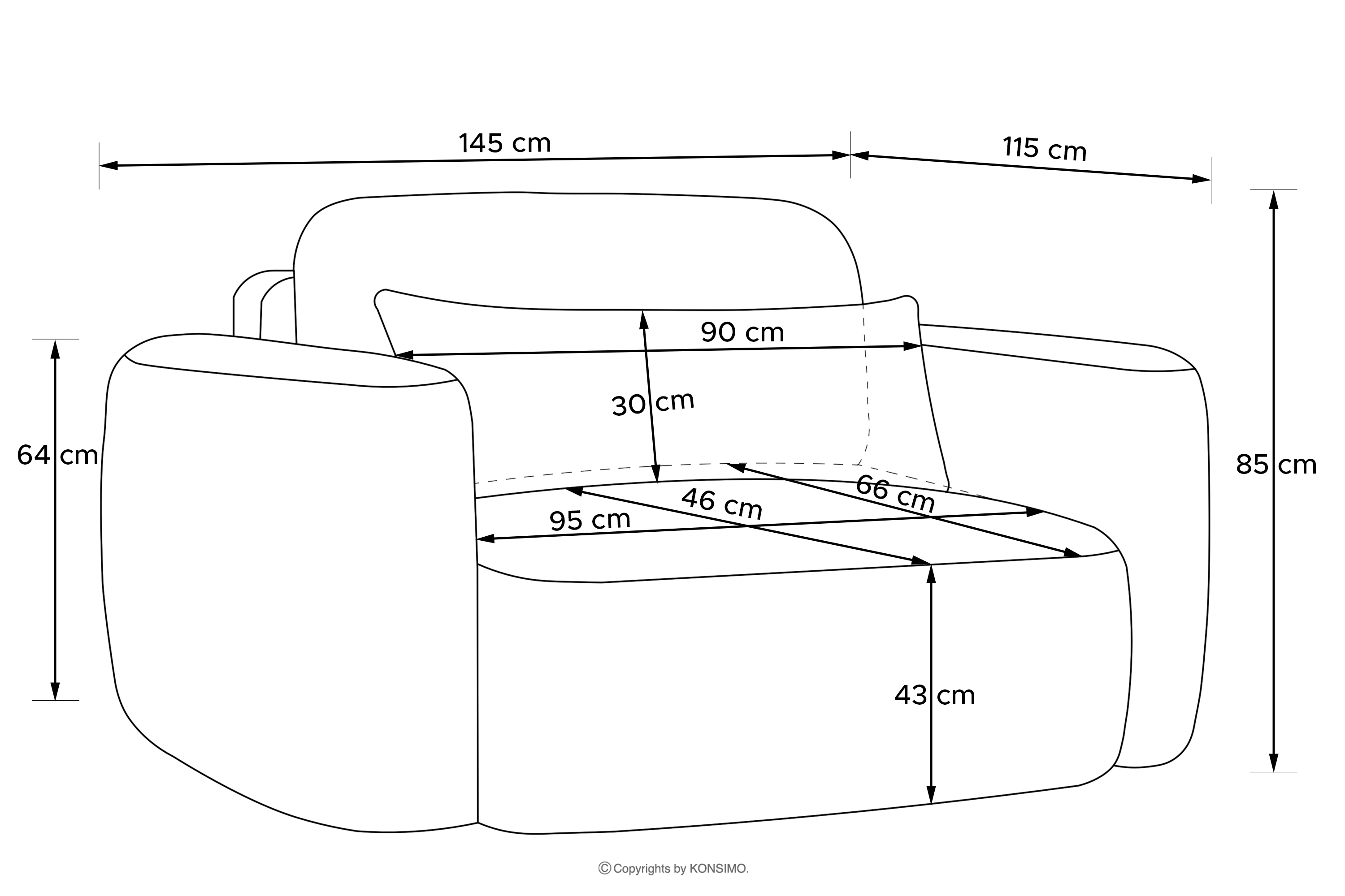 To połączenie gwarantuje idealne dopasowanie do sylwetki, minimalizując punkty nacisku i zapewniając relaks na najwyższym poziomie. Co więcej, każdy element pianki jest precyzyjnie formowany i docinany ręcznie – to pracochłonna technologia z dbałością o detale, która nie tylko podkreśla unikatowość każdego mebla, ale także gwarantuje zachowanie jego perfekcyjnego kształtu przez długie lata. Zapomnij o odkształceniach – ten mebel to inwestycja w trwały komfort i estetykę. Duża głębokość siedziska przekłada się na imponującą powierzchnię spania, czyniąc ją idealnym rozwiązaniem dla niespodziewanych gości lub jako dodatkowe miejsce do wypoczynku w nocy. Co ważne, poduszki zostały zaprojektowane tak, aby można było ich używać zarówno w wersji wypoczynkowej, jak i do spania, gwarantując komfortowy sen.