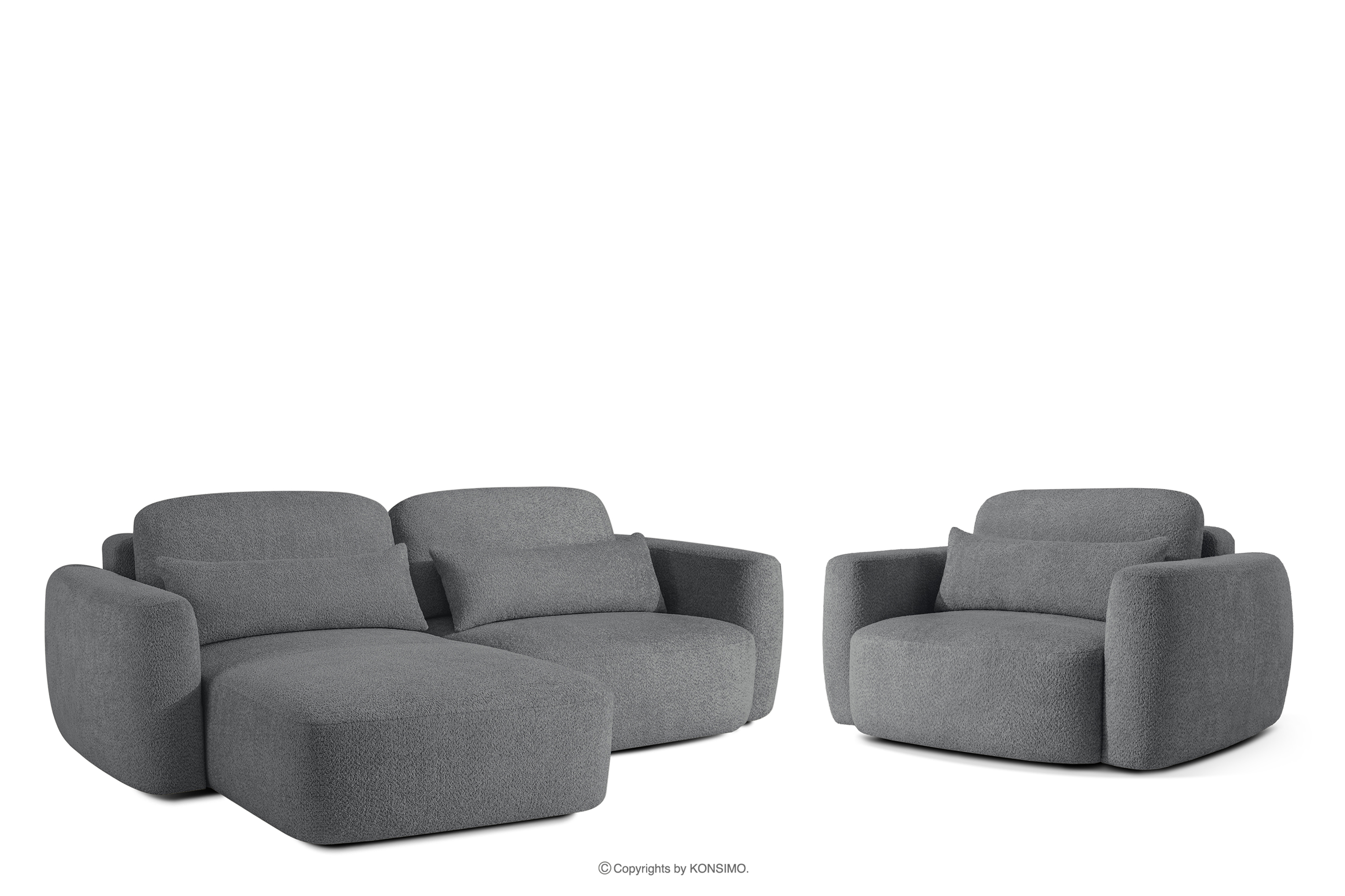 ELOSA zobacz całą kolekcję Narożnik lewy i fotel w stylu japońskim boucle ciemny szary- kolor ciemny szary