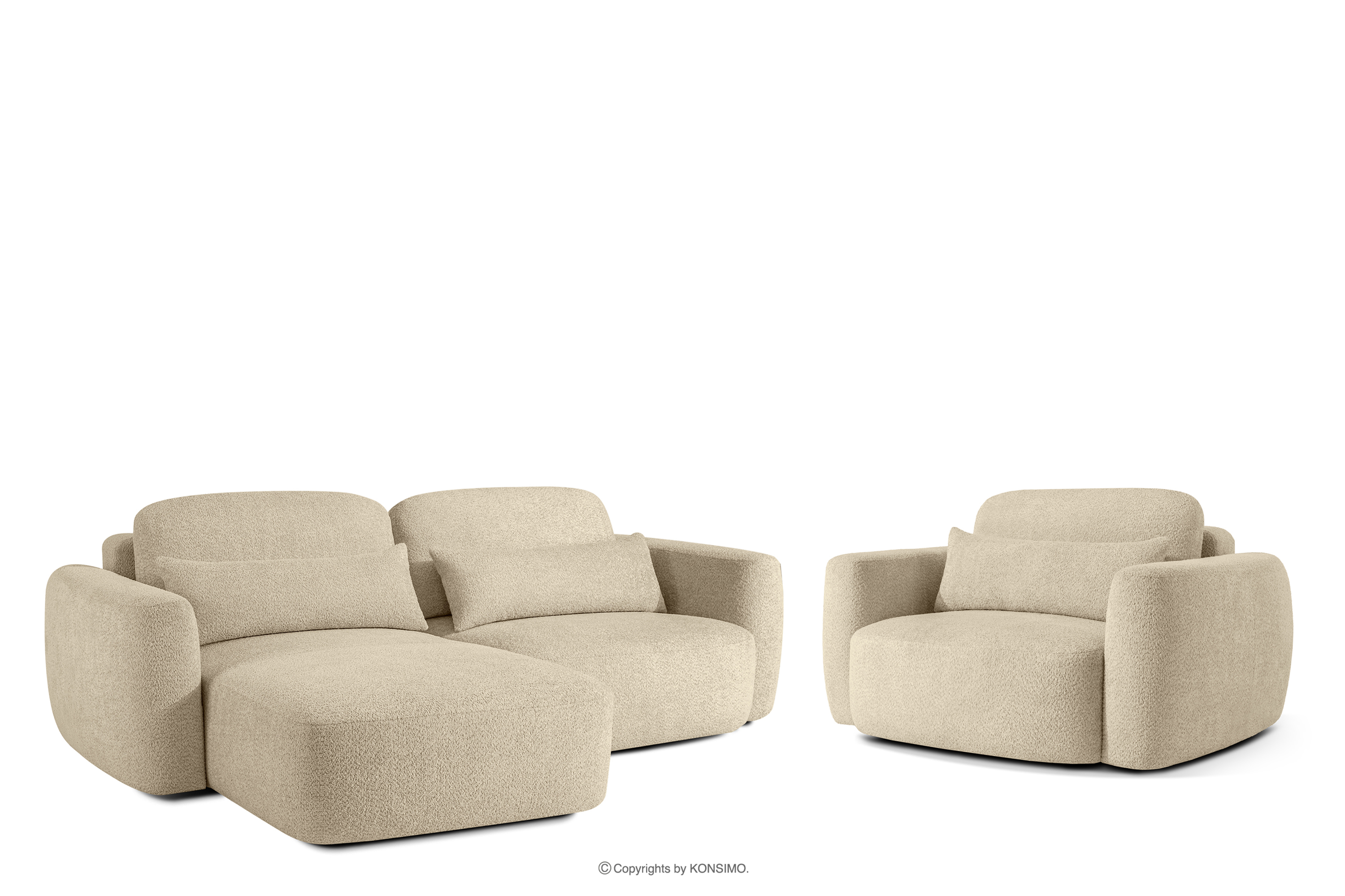 ELOSA zobacz całą kolekcję Narożnik lewy i fotel w stylu japandi boucle jasny beżowy- kolor jasny beżowy