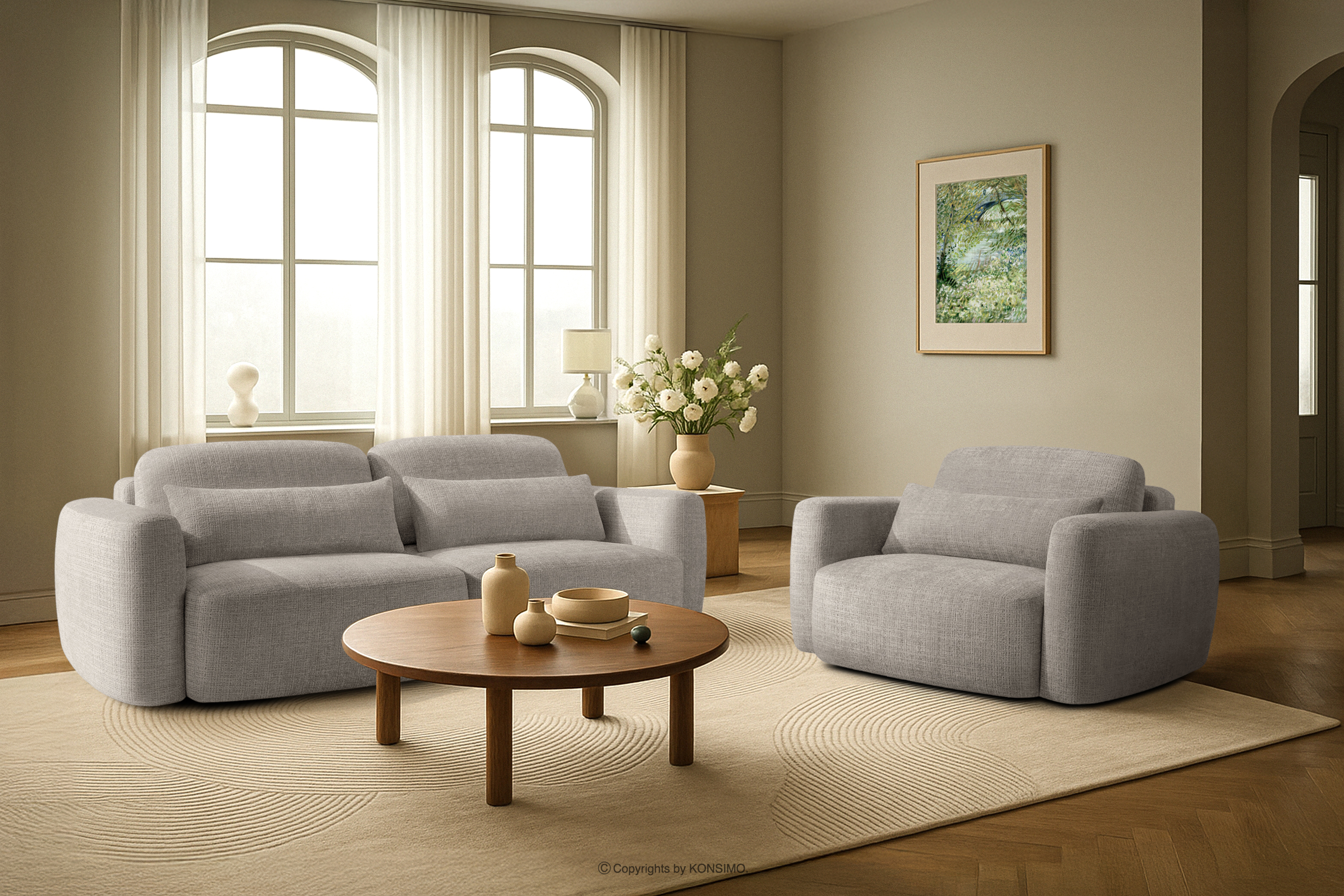 ELOSA zobacz całą kolekcję Fotel japandi w tkaninie szenil jasny szary- kolor jasny szary
