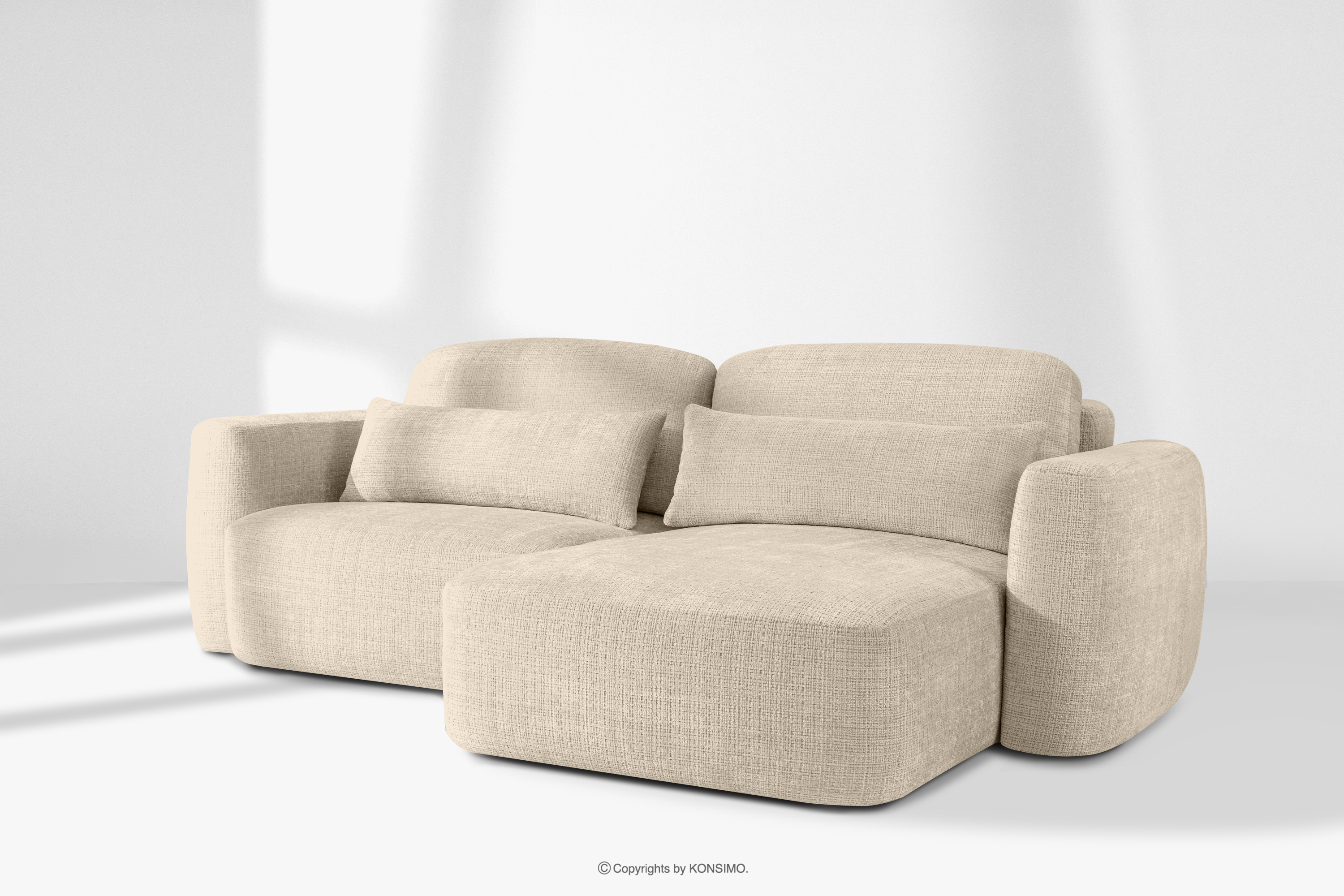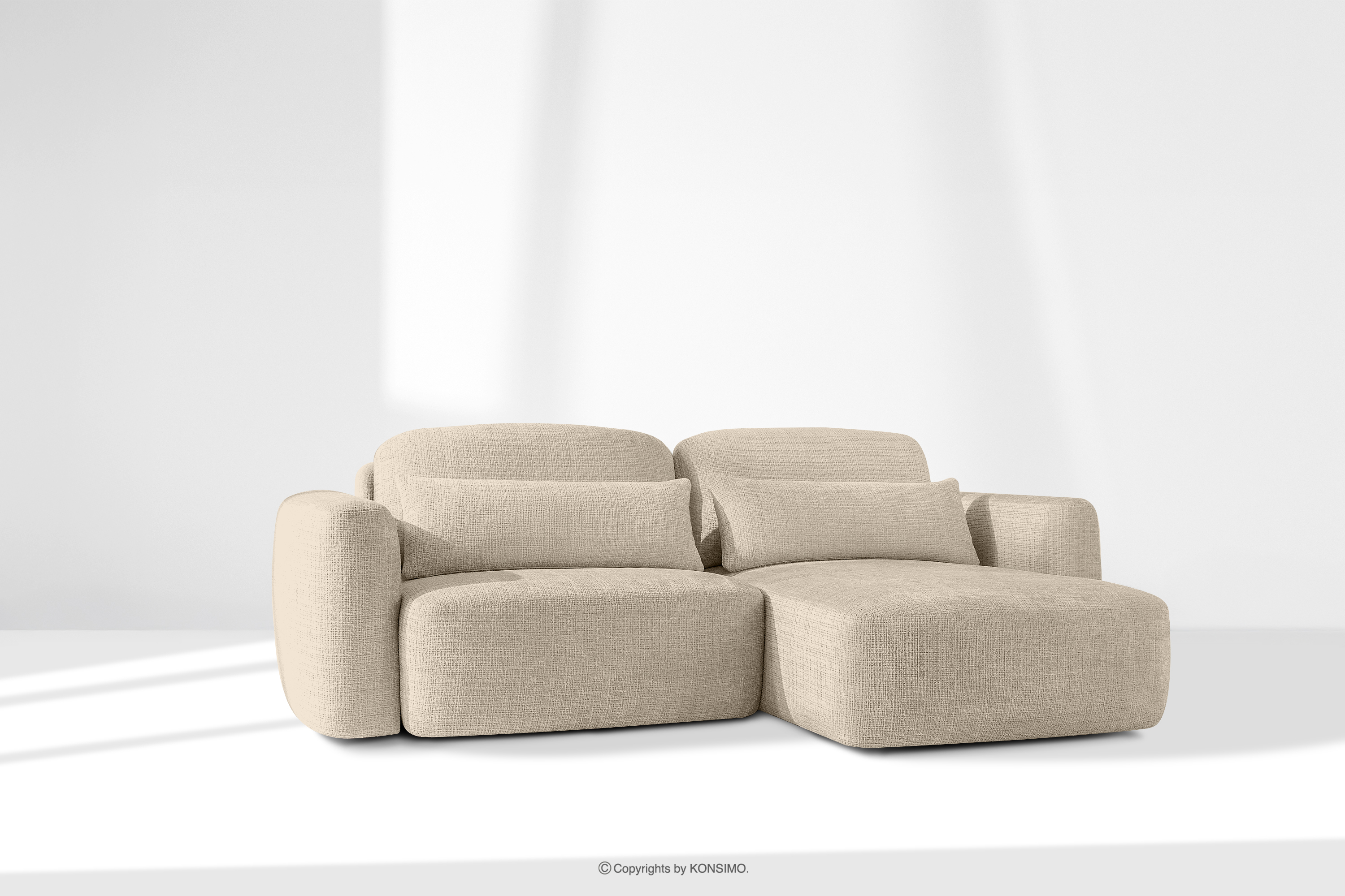 ELOSA zobacz całą kolekcję Narożnik japandi w tkaninie szenil prawy kremowy- kolor kremowy