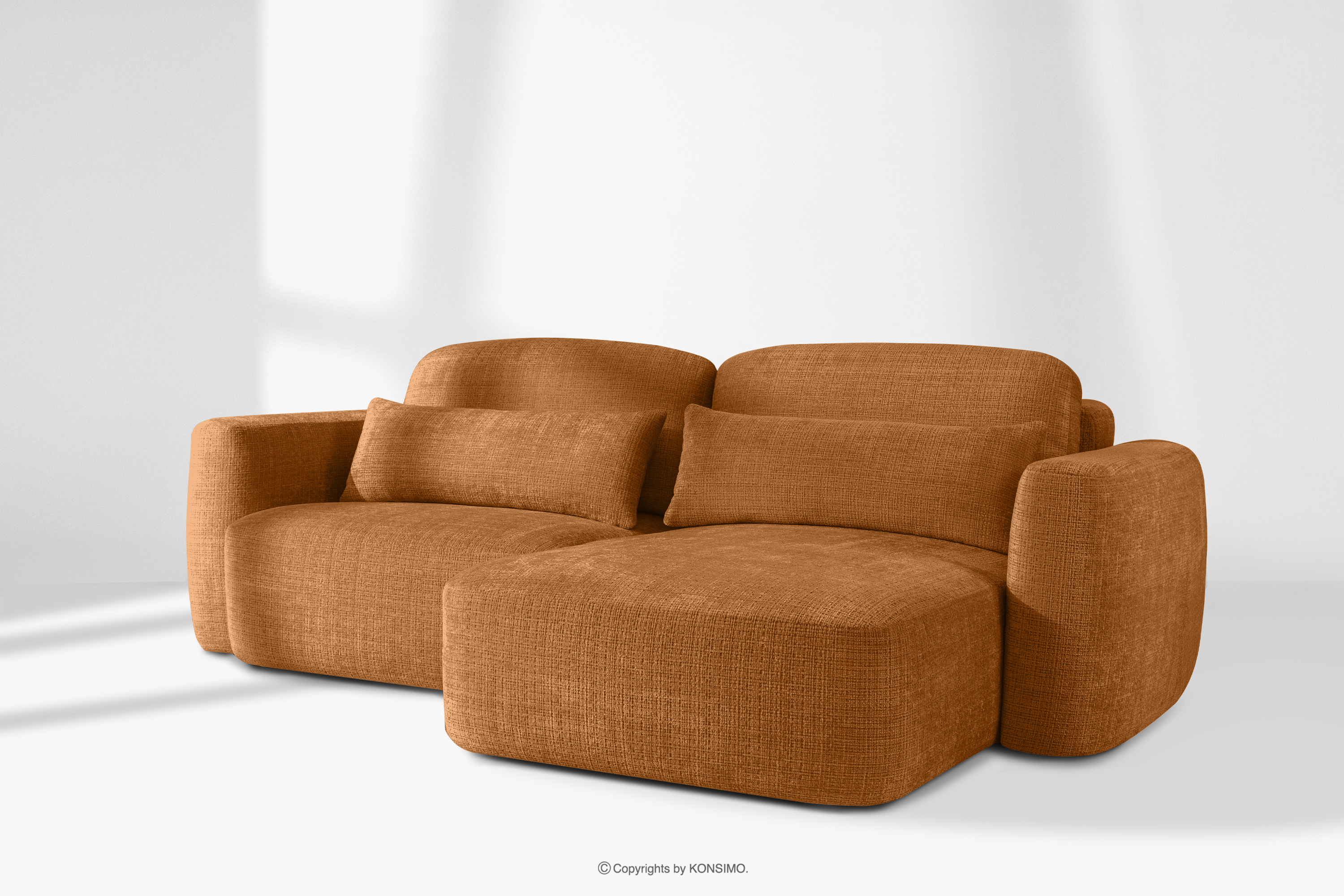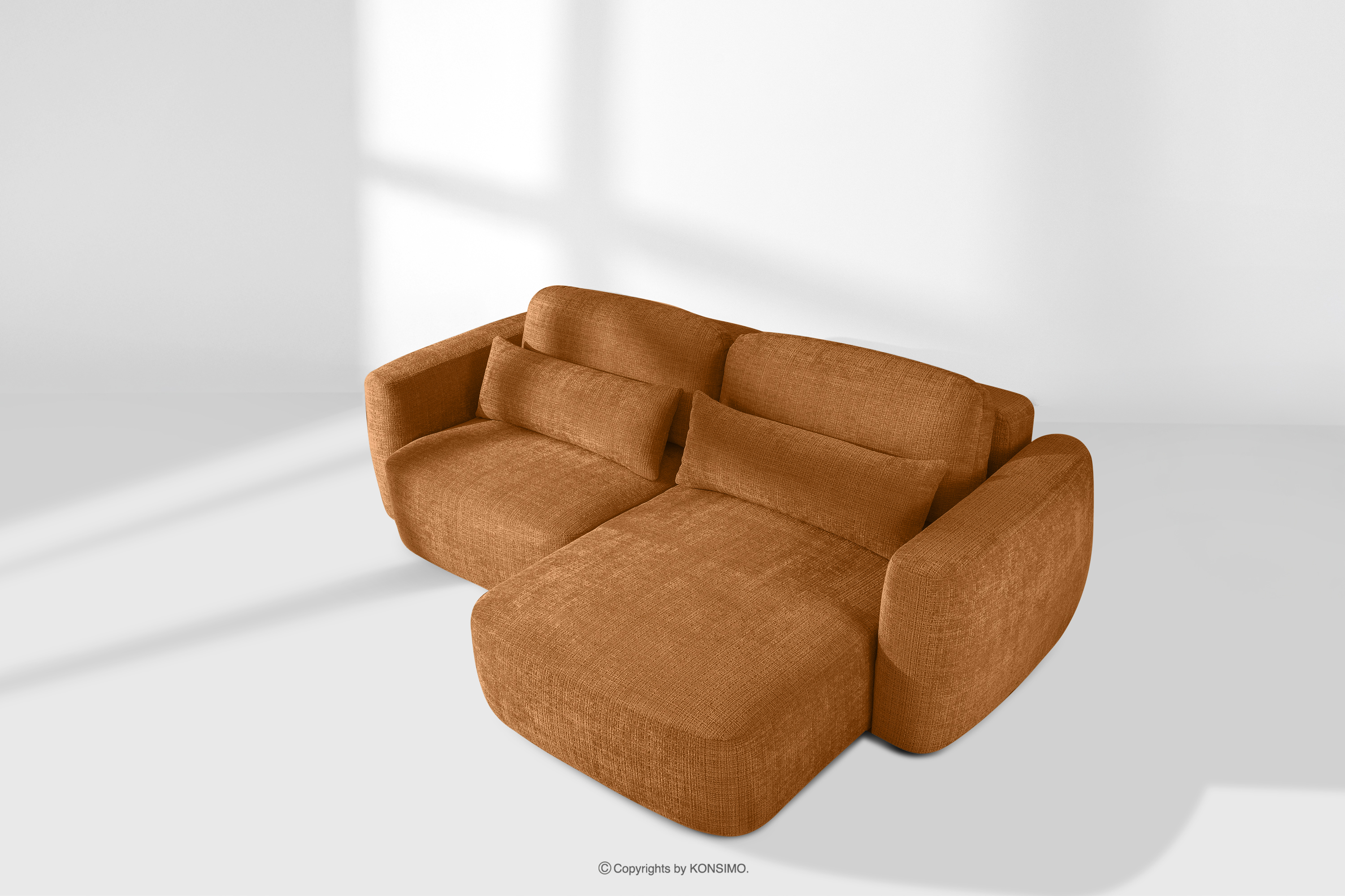 Narożnik w stylu japońskim w tkaninie szenil prawy rudy ELOSA - kolor rudy