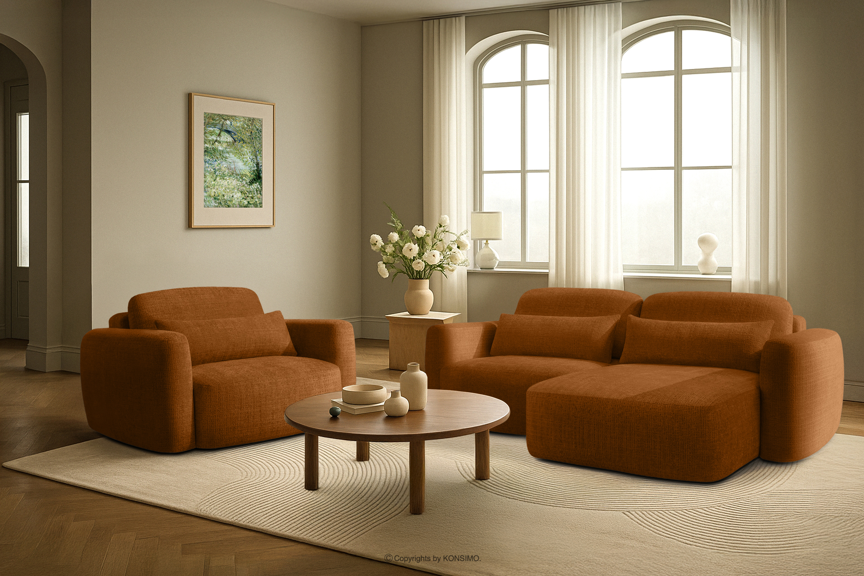 dla produktu Narożnik w stylu japońskim w tkaninie szenil prawy rudy