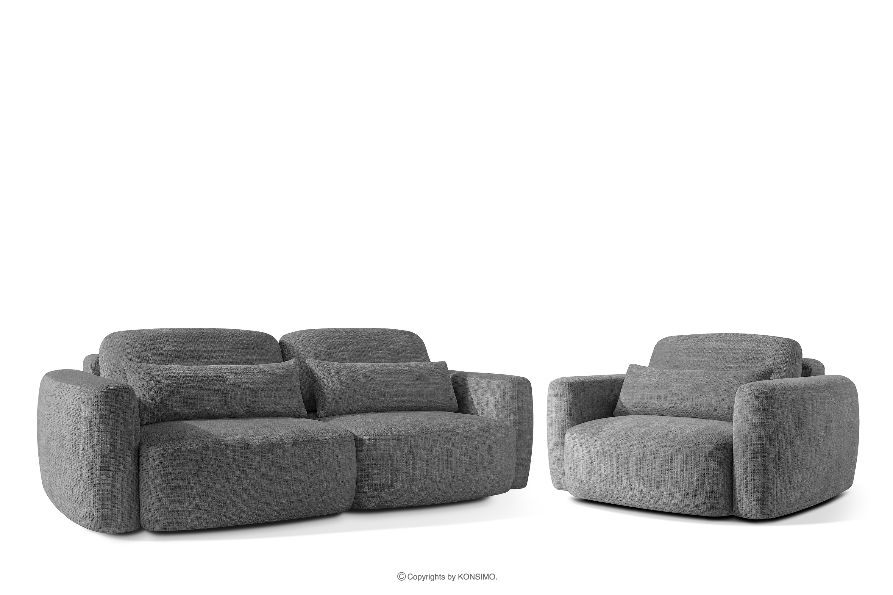 Sofa i fotel japandi w tkaninie szenil ciemny szary ELOSA - kolor ciemny szary