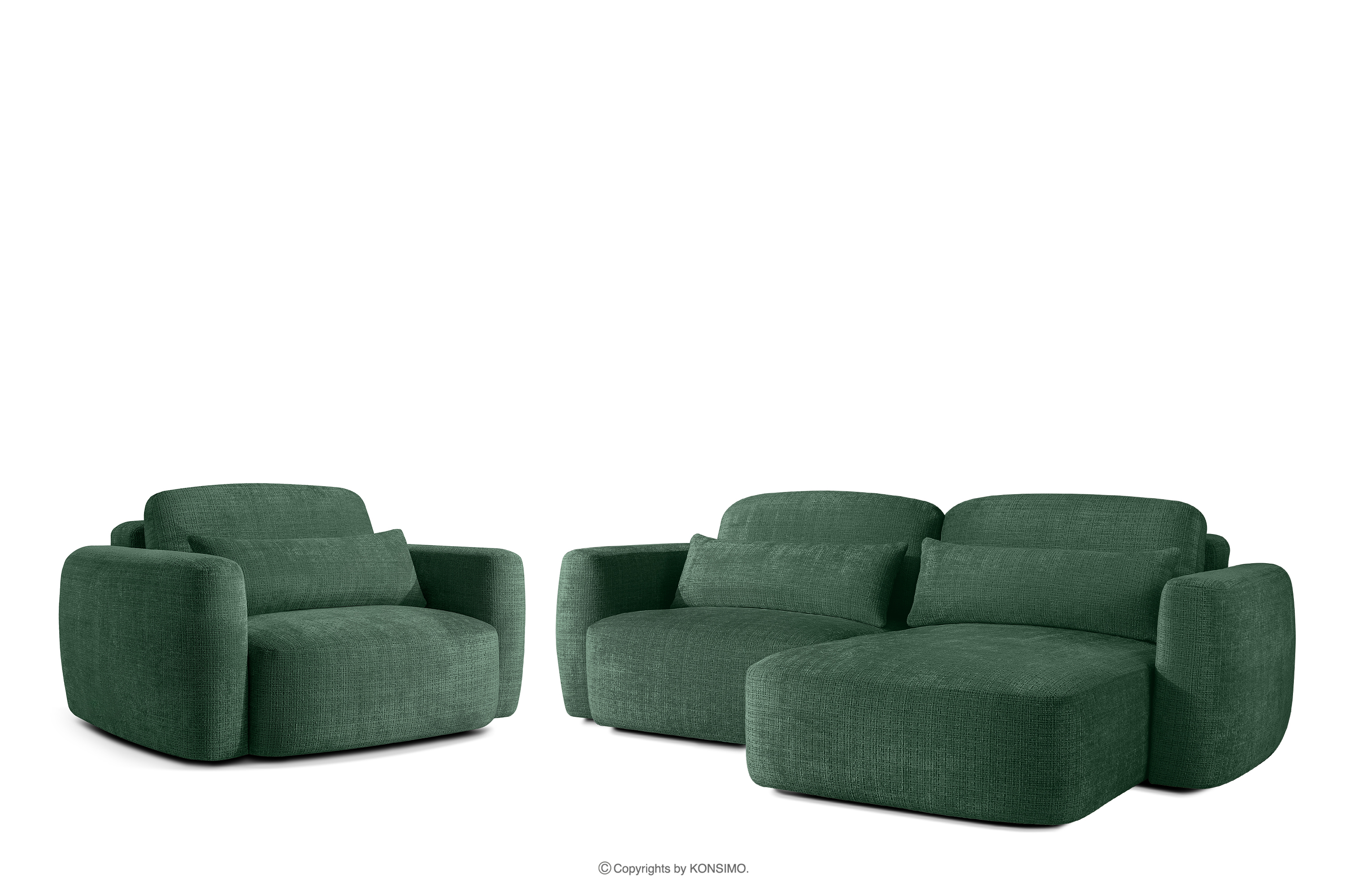 ELOSA zobacz całą kolekcję Narożnik prawy i fotel w stylu japońskim szenil zielony- kolor zielony