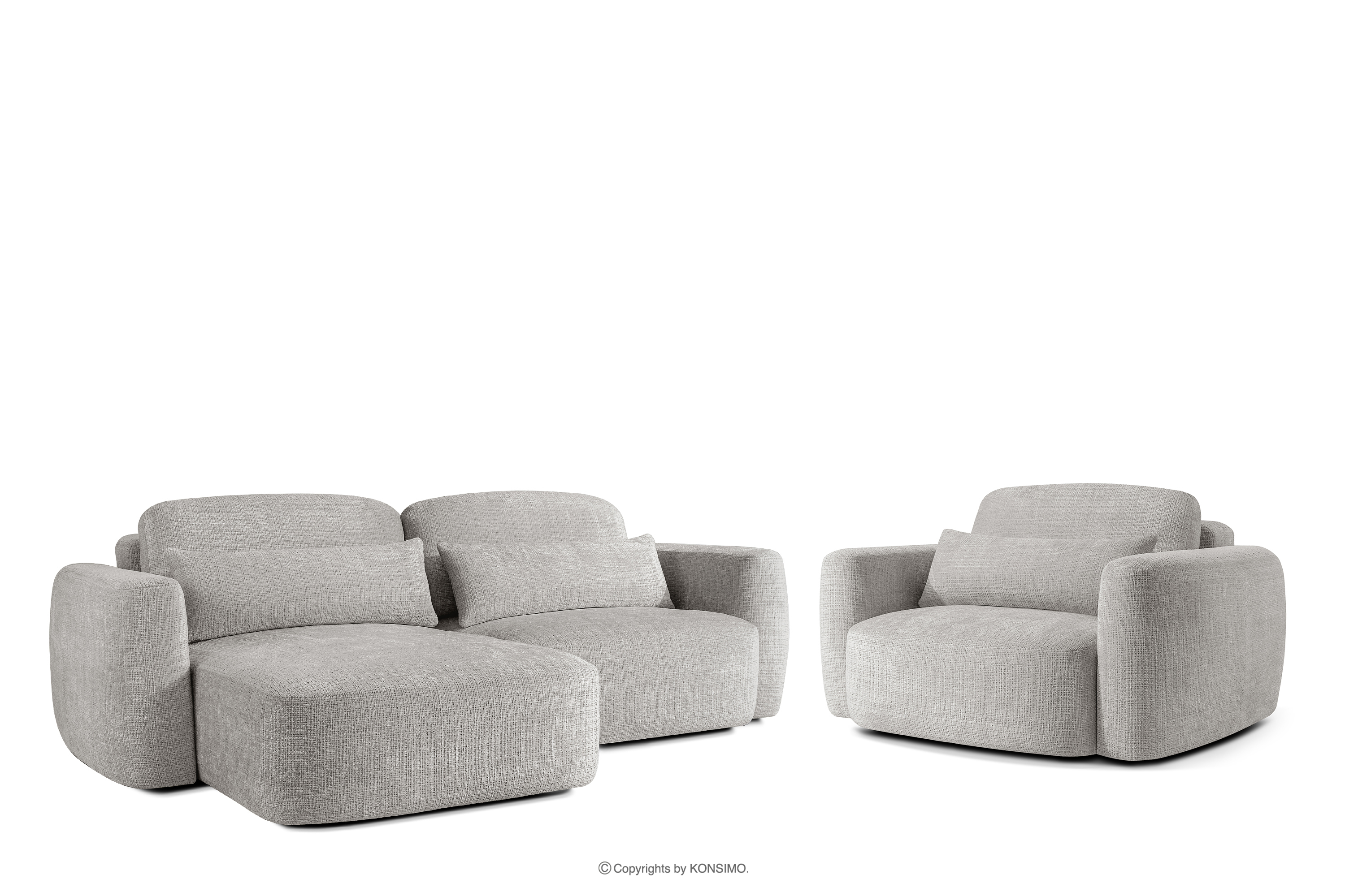 ELOSA zobacz całą kolekcję Narożnik lewy i fotel w stylu japandi szenil jasny szary- kolor jasny szary