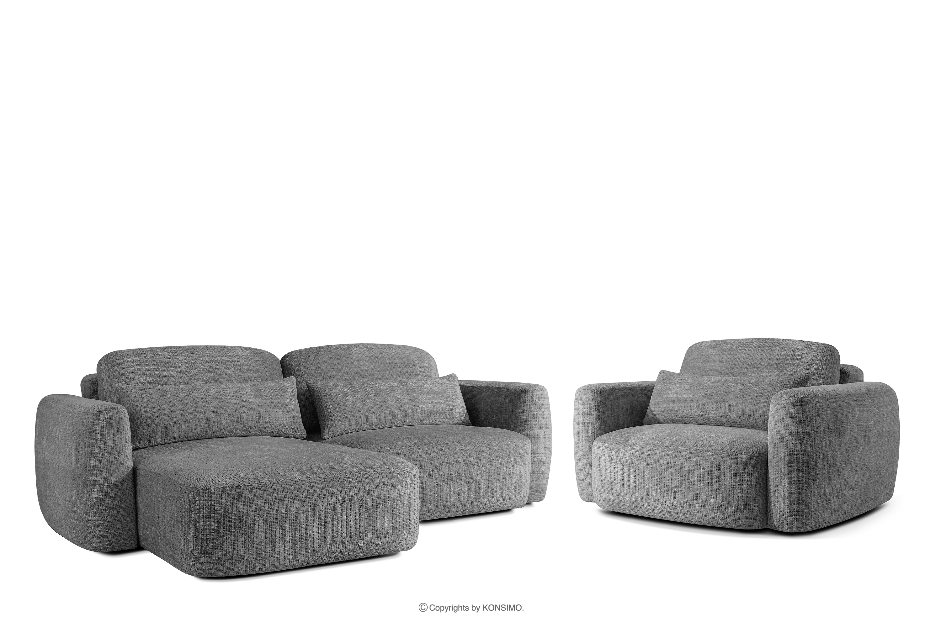 ELOSA zobacz całą kolekcję Narożnik lewy i fotel w stylu japandi szenil ciemny szary- kolor ciemny szary