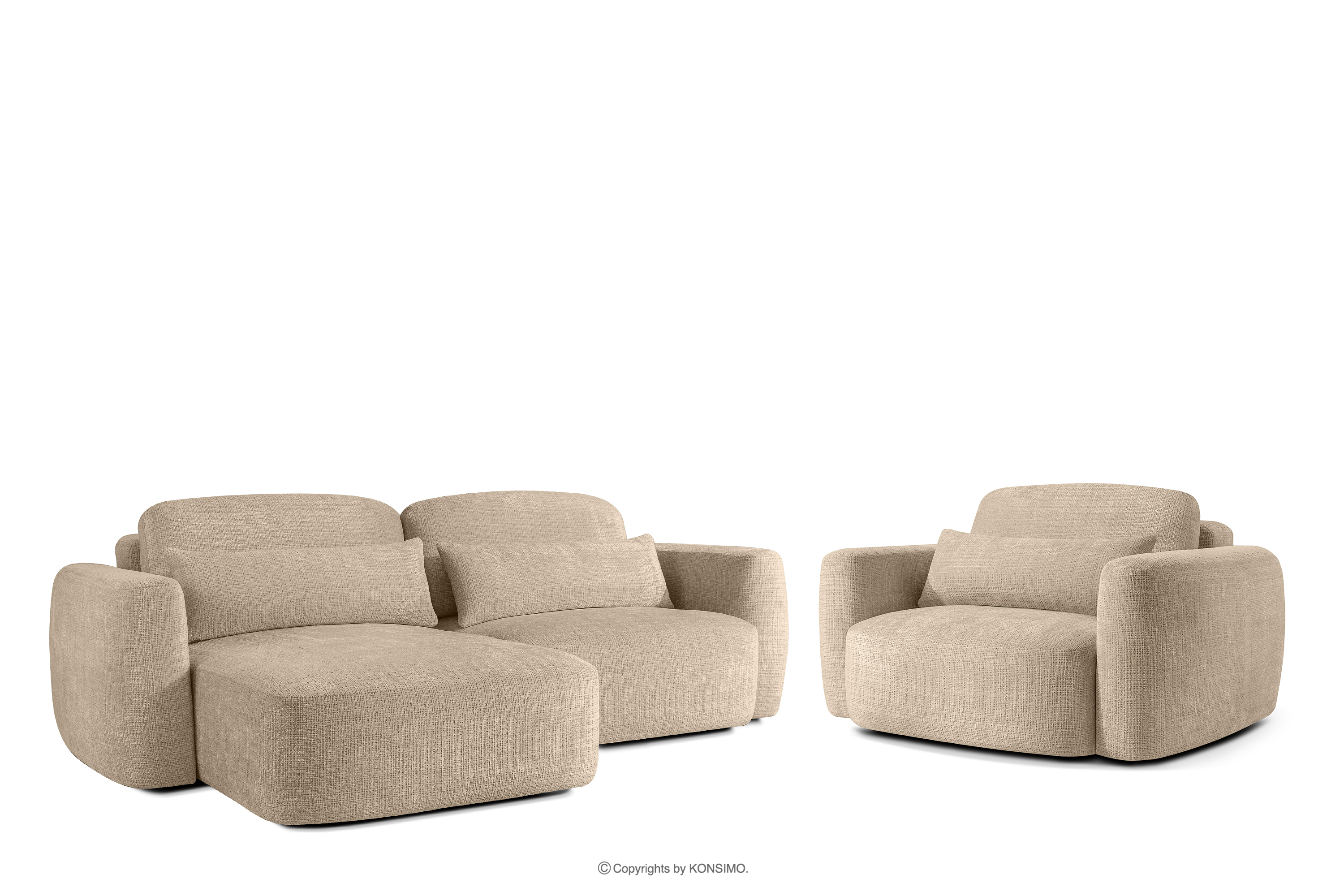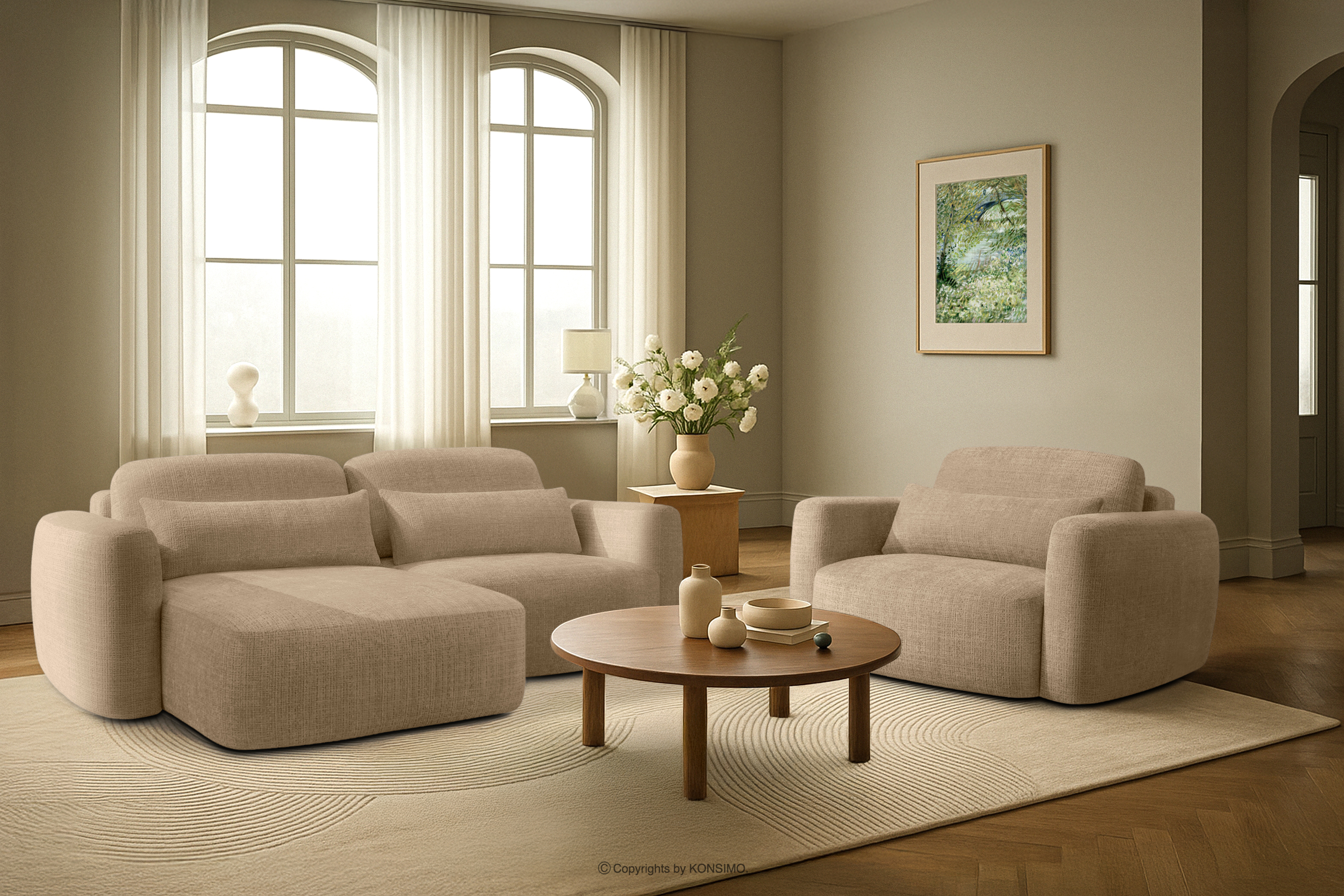 ELOSA zobacz całą kolekcję Narożnik lewy i fotel w stylu japandi szenil beżowy- kolor beżowy