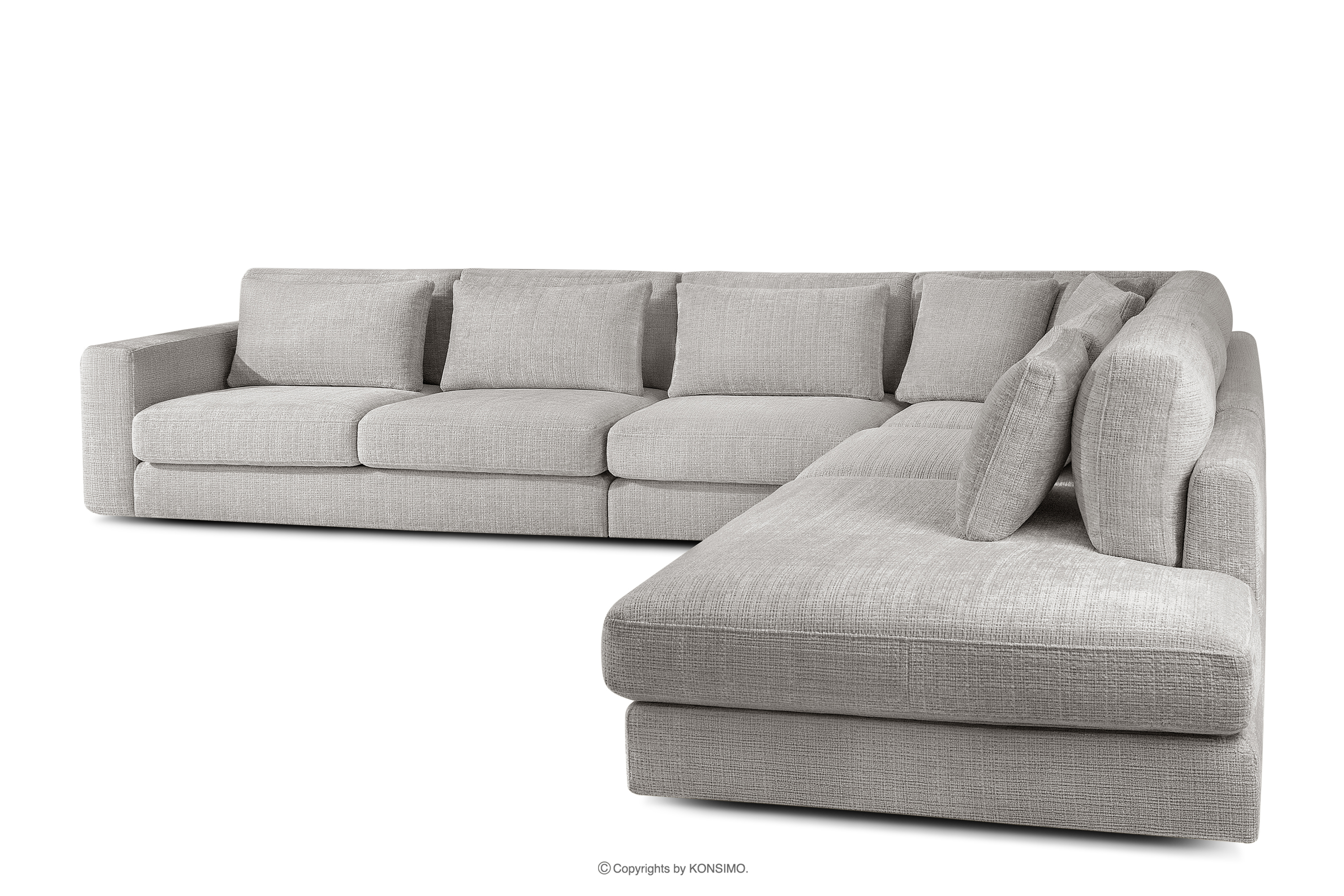 VERUS Duży wygodny narożnik do salonu tkanina szenil prawy jasny szary