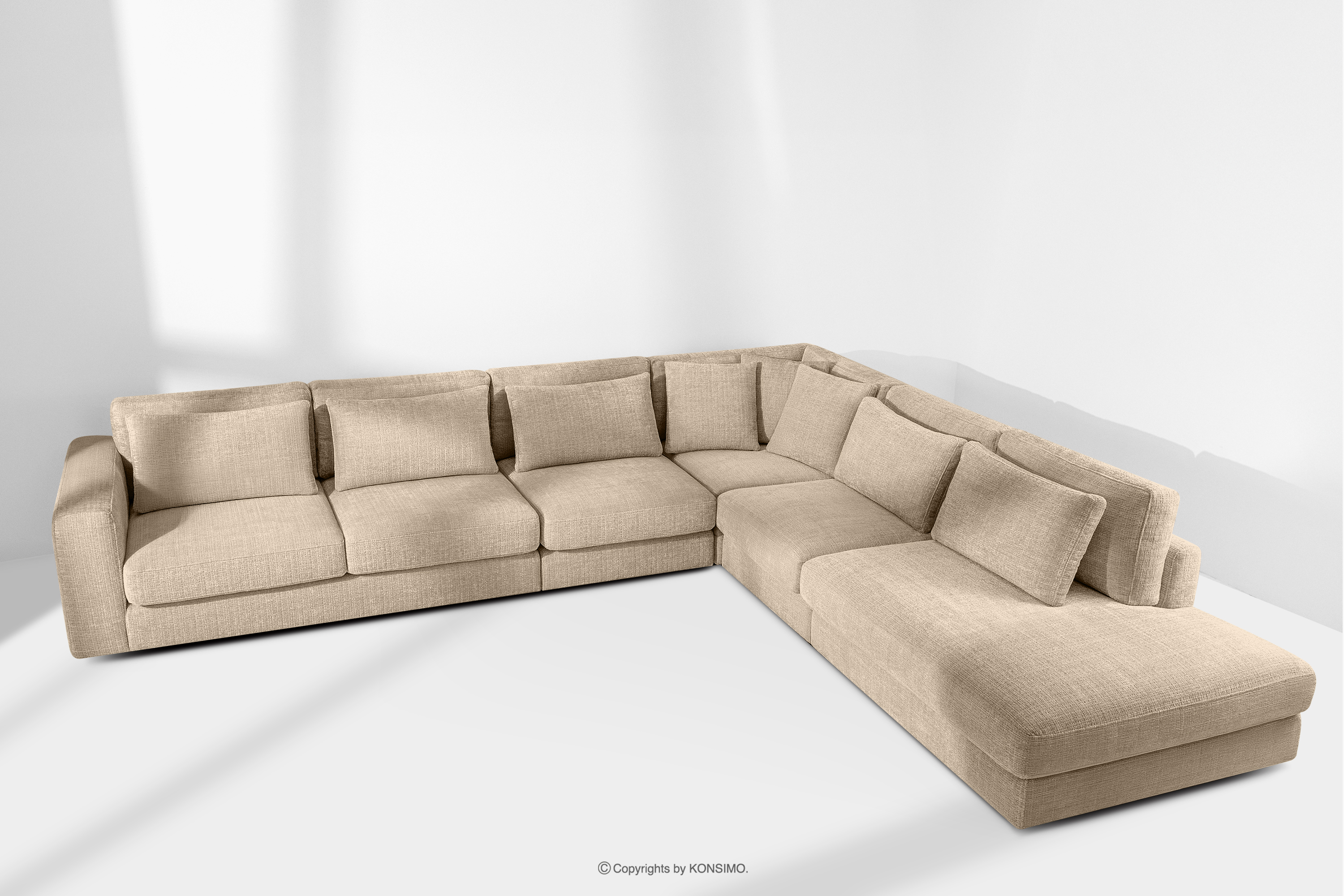 VERUS Duży wygodny narożnik do salonu tkanina szenil prawy beżowy