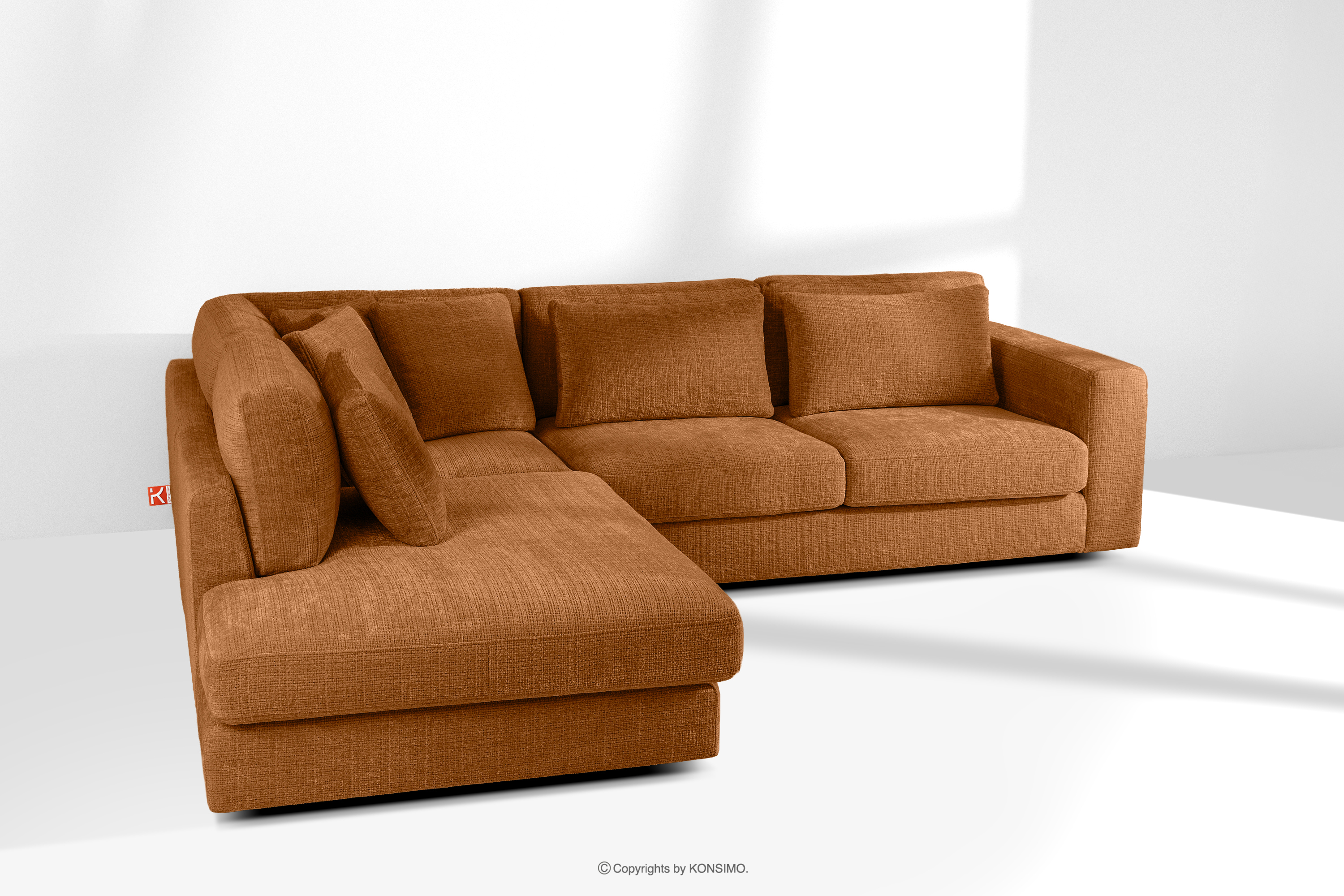 Duży narożnik w tkaninie szenilowej lewy rudy VERUS - kolor rudy