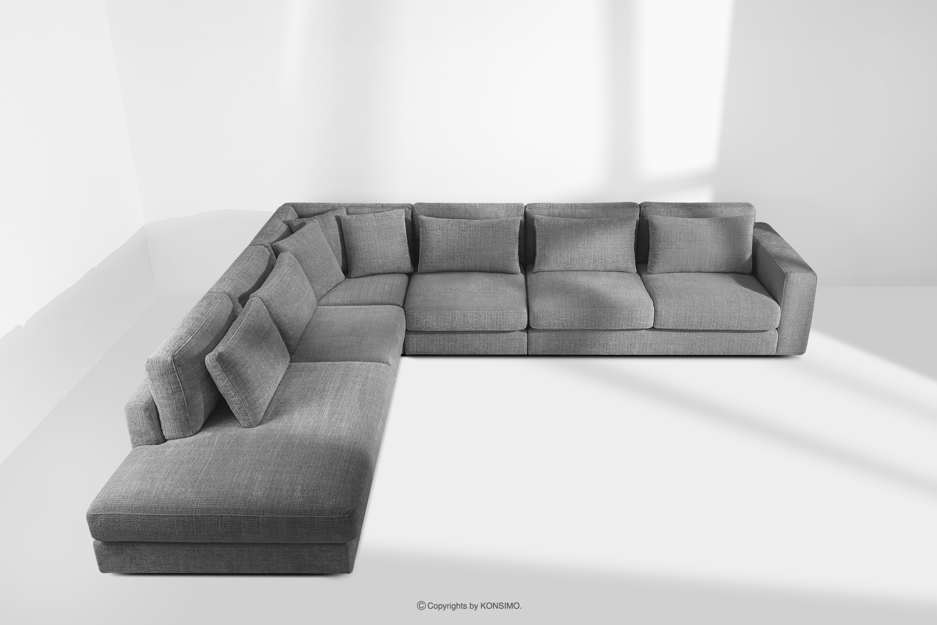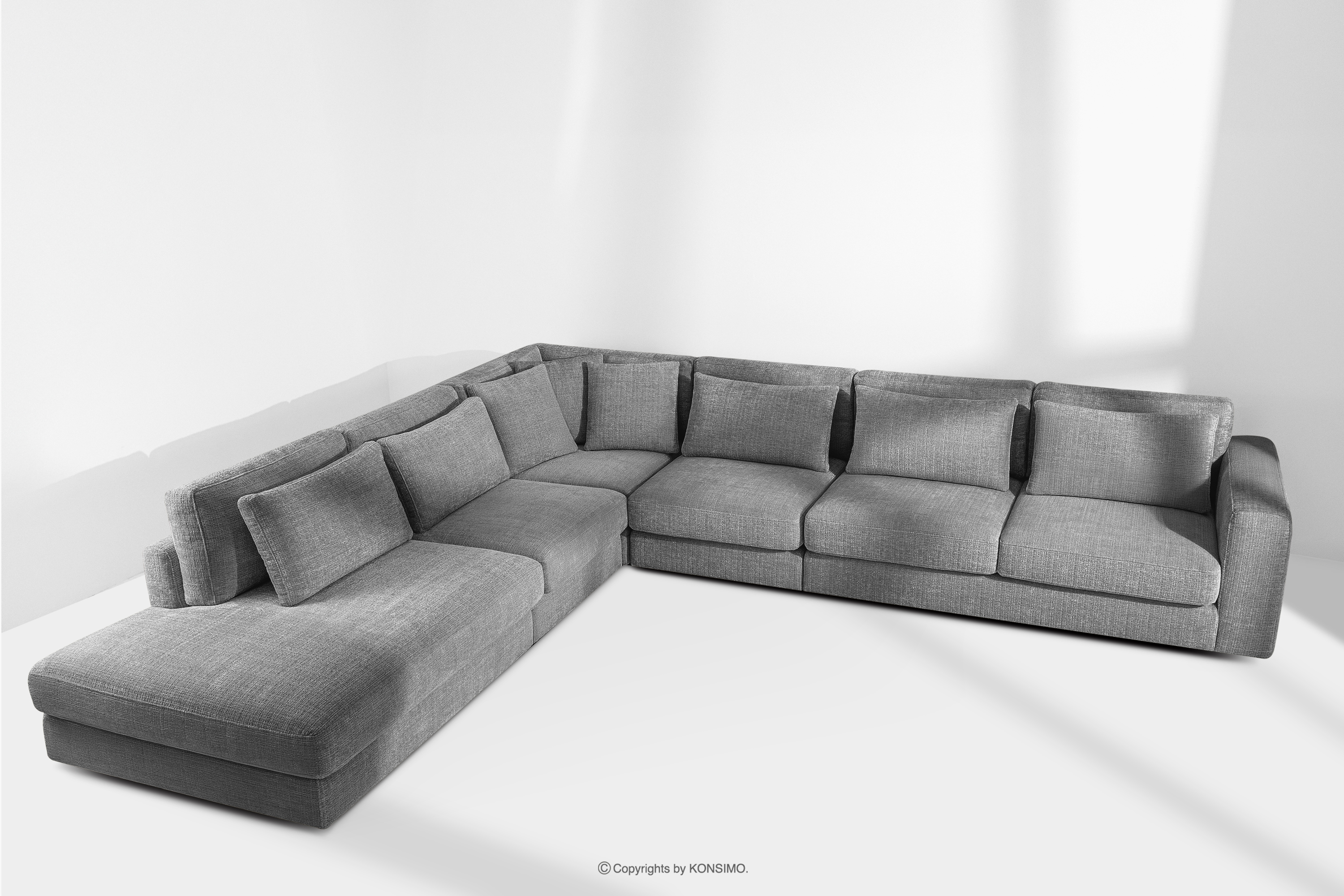 • Poduszki: 3x poduszka typu jasiek, 5x poduszka dekoracyjna prostokątna, 7x poduszka oparciowa, wypełnienie z kulki silikonowej i granulatu piankowego