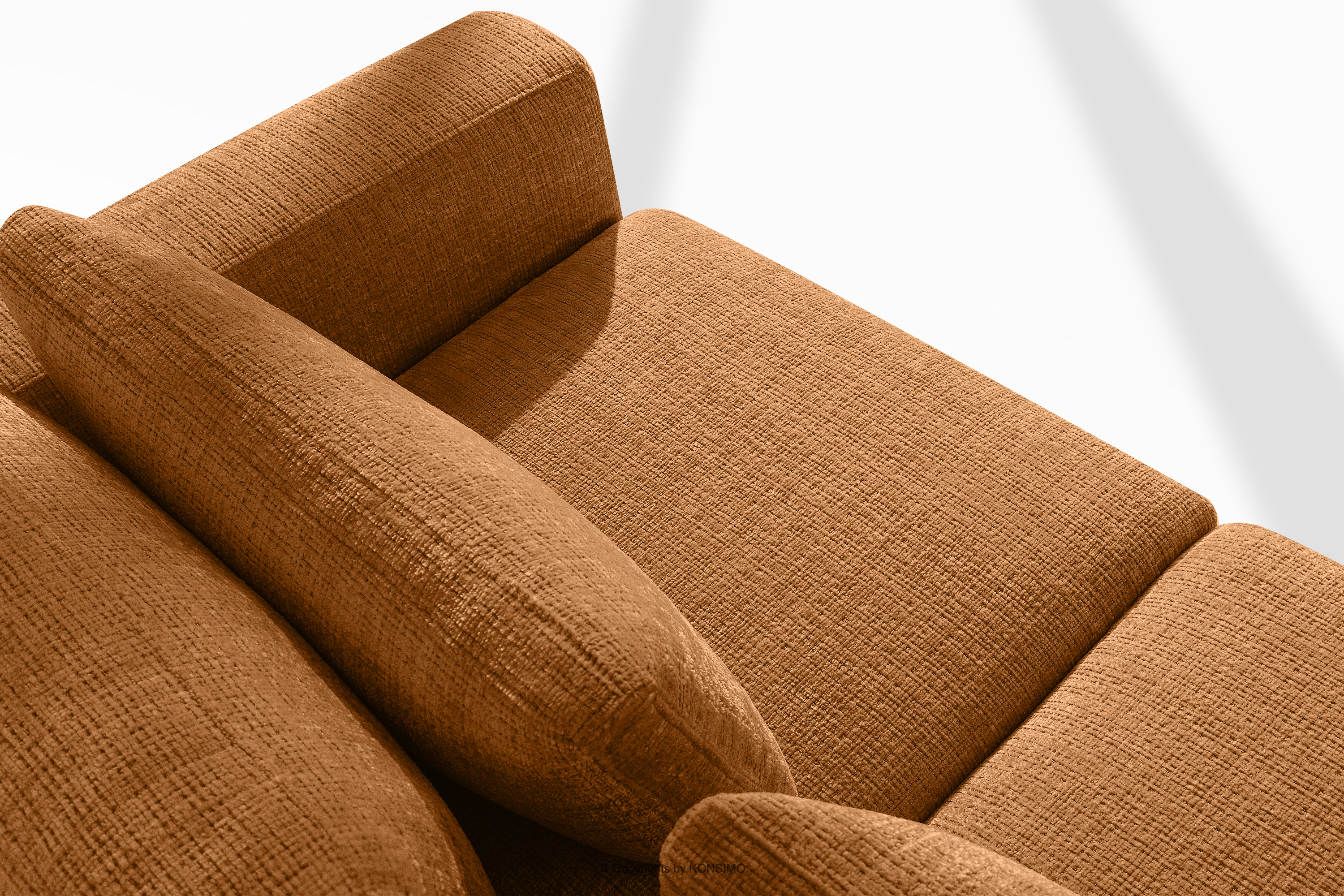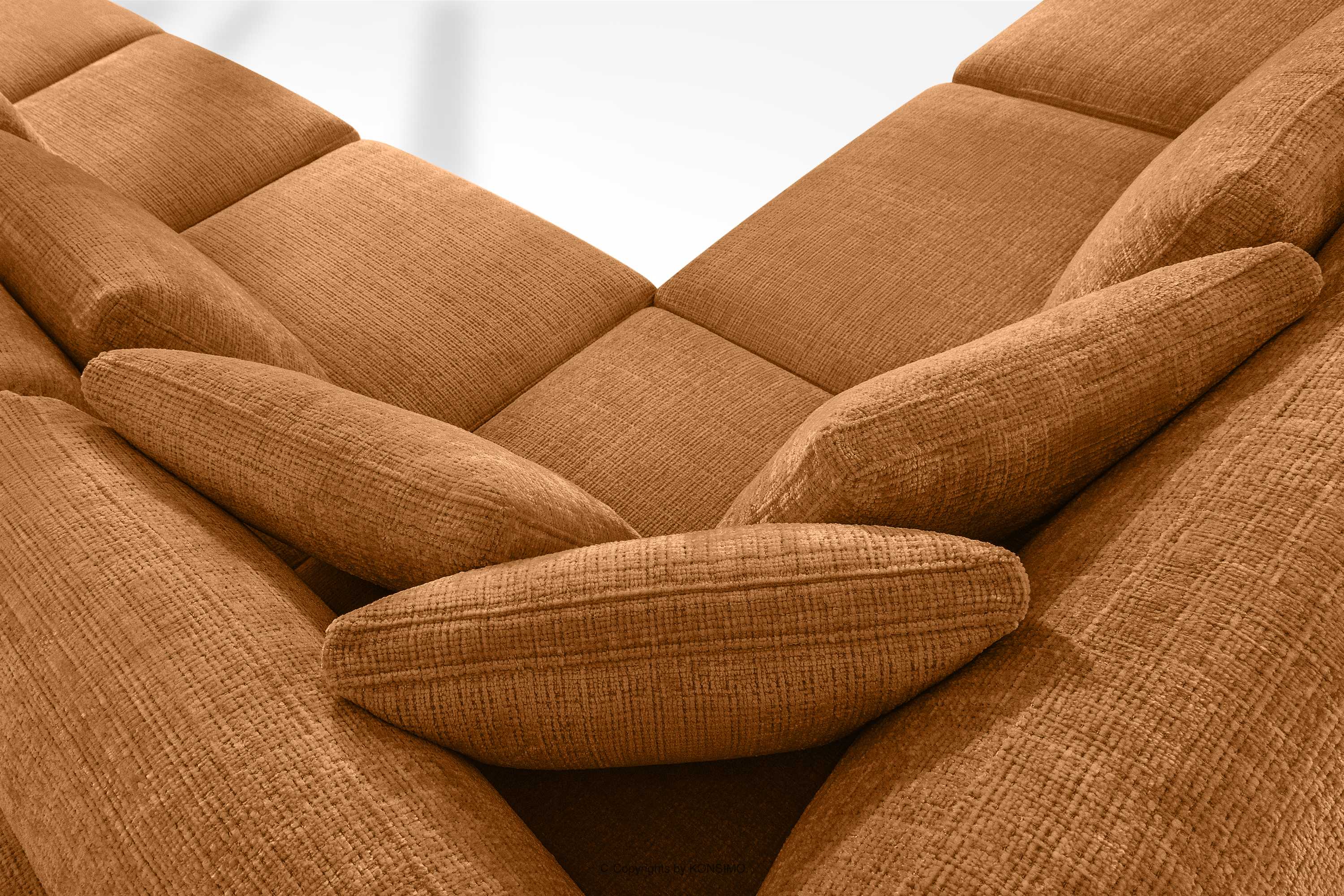 VERUS zobacz całą kolekcję Duży narożnik do salonu w tkaninie szenilowej lewy rudy- kolor rudy