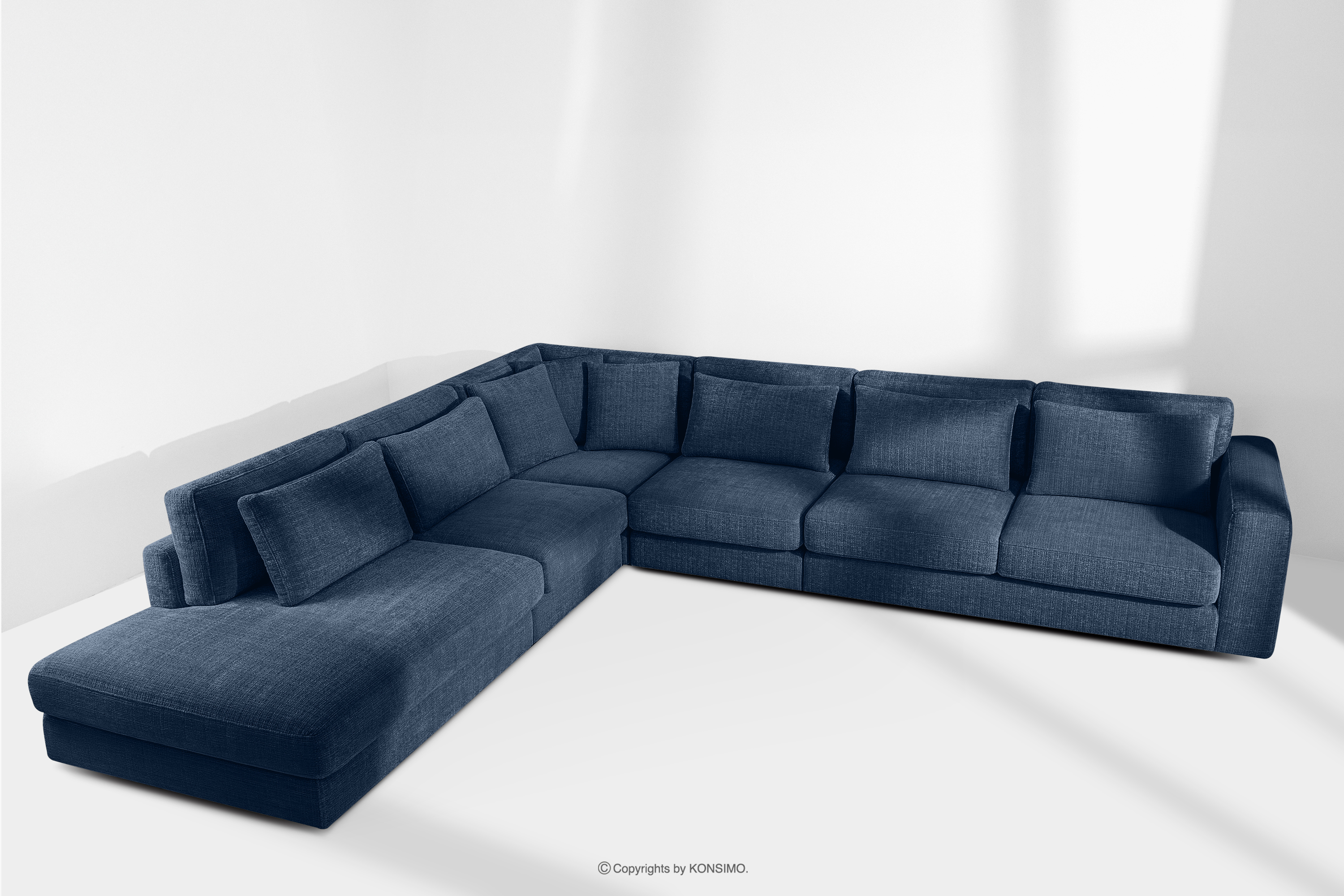 VERUS zobacz całą kolekcję Duży narożnik do salonu w tkaninie szenilowej lewy granatowy- kolor granatowy