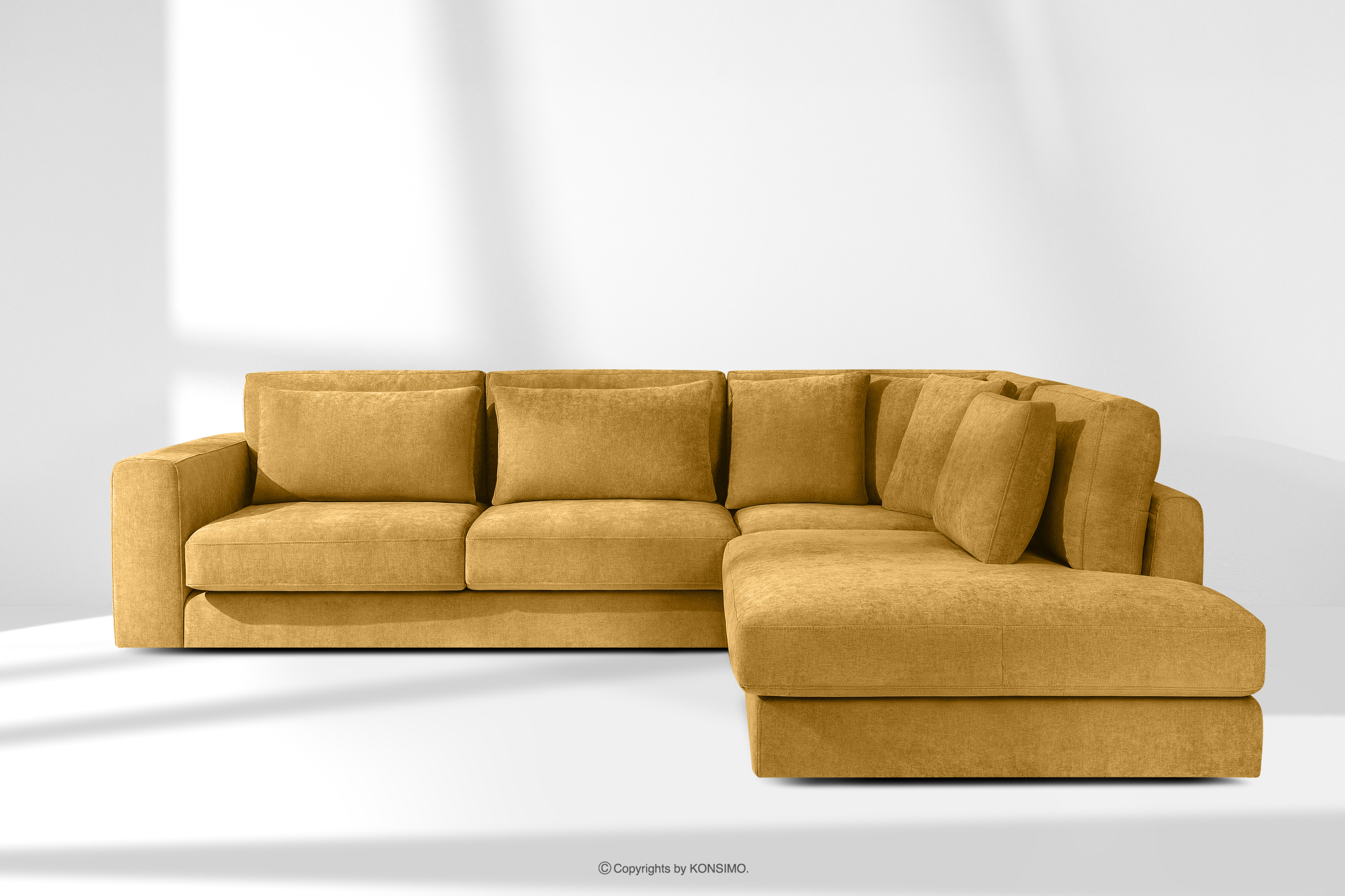 VERUS Wygodny narożnik w tkaninie plecionej prawy żółty