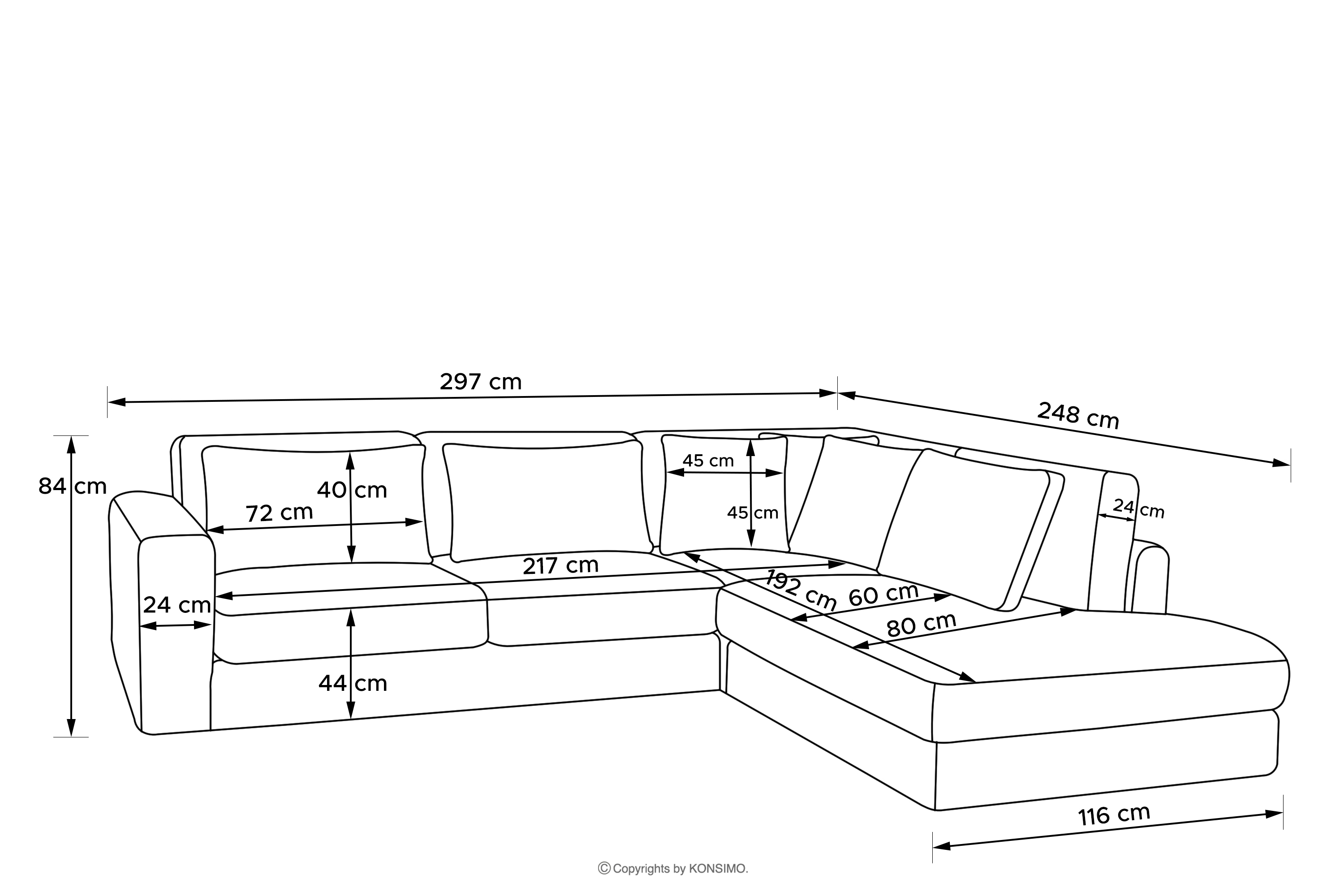 VERUS zobacz całą kolekcję Wygodny narożnik do salonu tkanina pleciona prawy jasny beżowy- kolor jasny beżowy