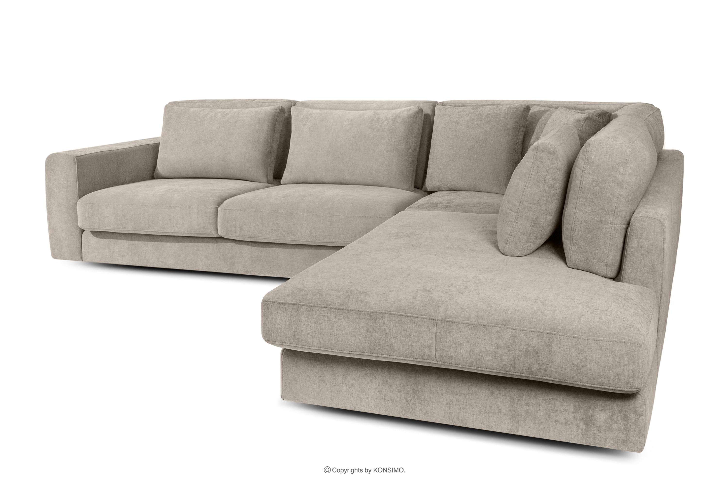 VERUS zobacz całą kolekcję Wygodny narożnik do salonu tkanina pleciona prawy szarobeżowy- kolor szarobeżowy