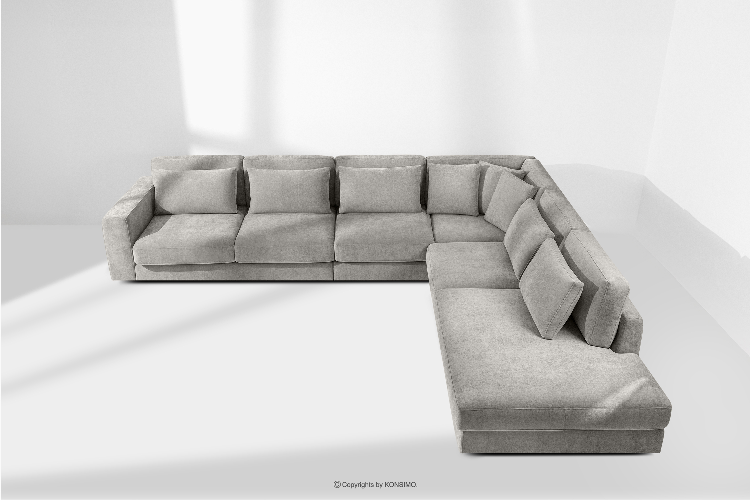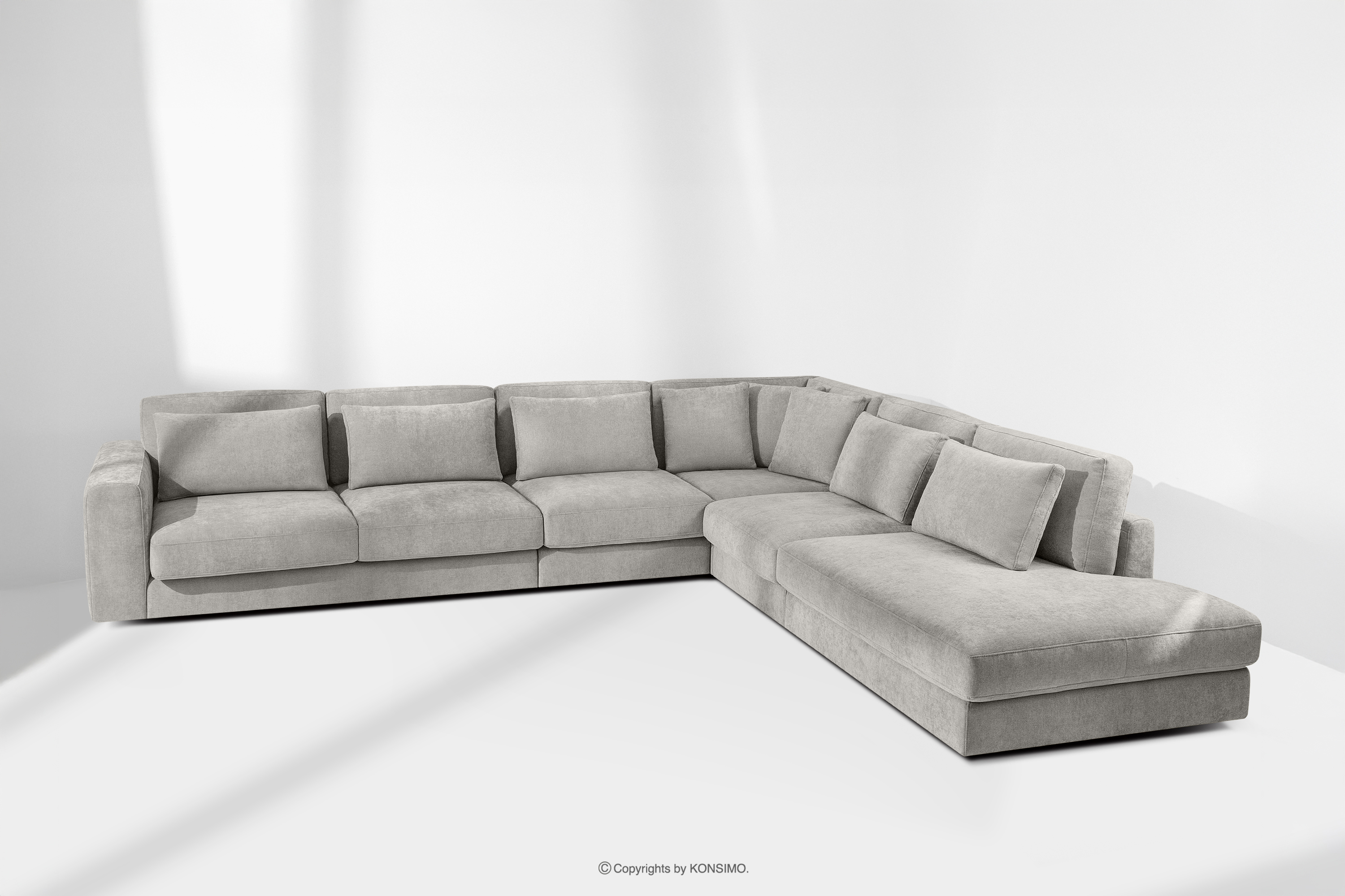 VERUS zobacz całą kolekcję Duży narożnik do salonu w tkaninie plecionej prawy jasny szary- kolor jasny szary