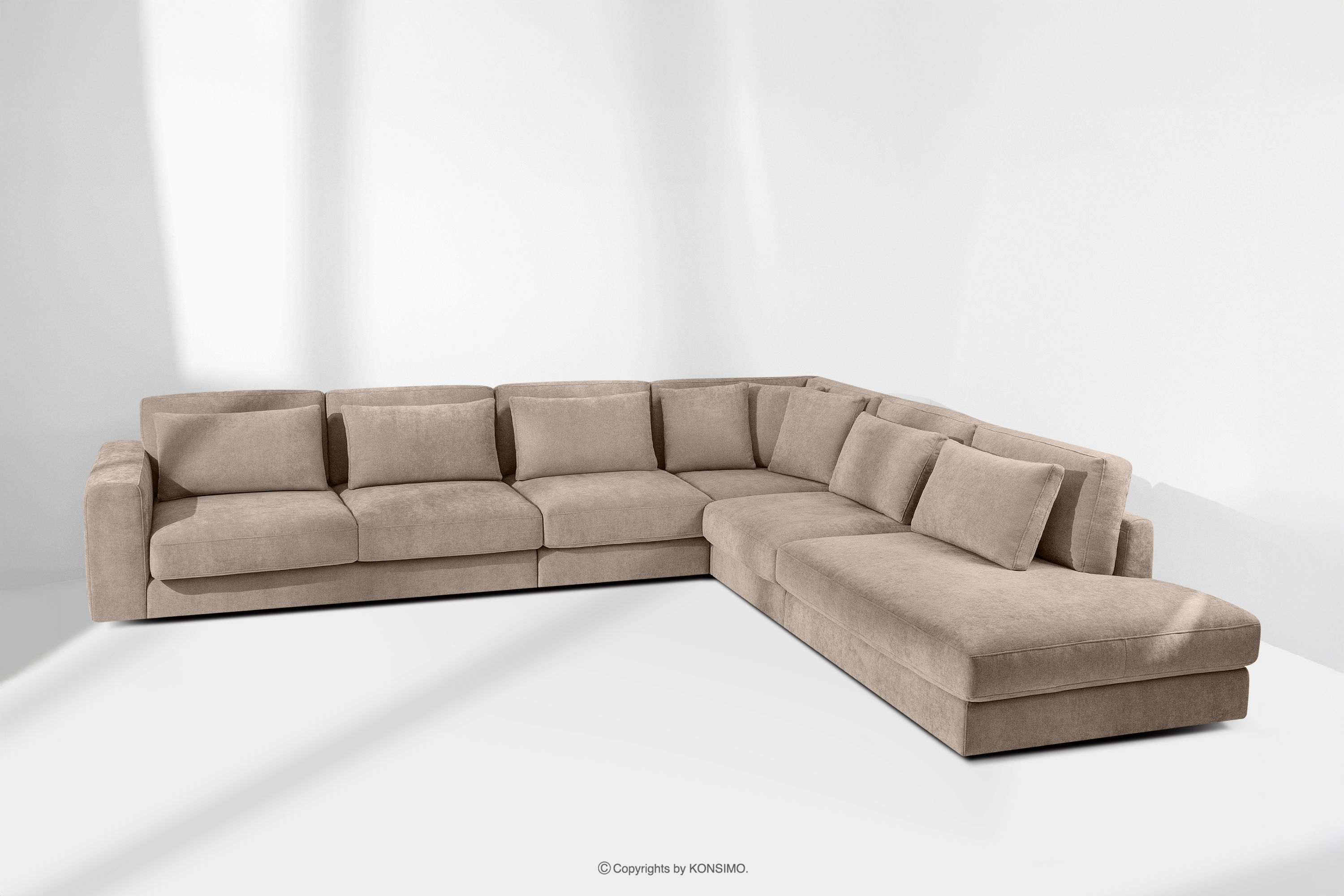 VERUS zobacz całą kolekcję Duży wygodny narożnik do salonu tkanina pleciona prawy beżowy- kolor beżowy