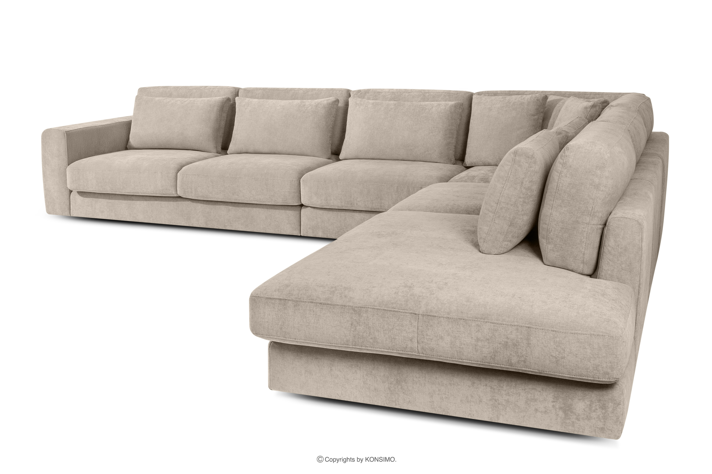 VERUS zobacz całą kolekcję Duży wygodny narożnik do salonu tkanina pleciona prawy jasny beżowy- kolor jasny beżowy