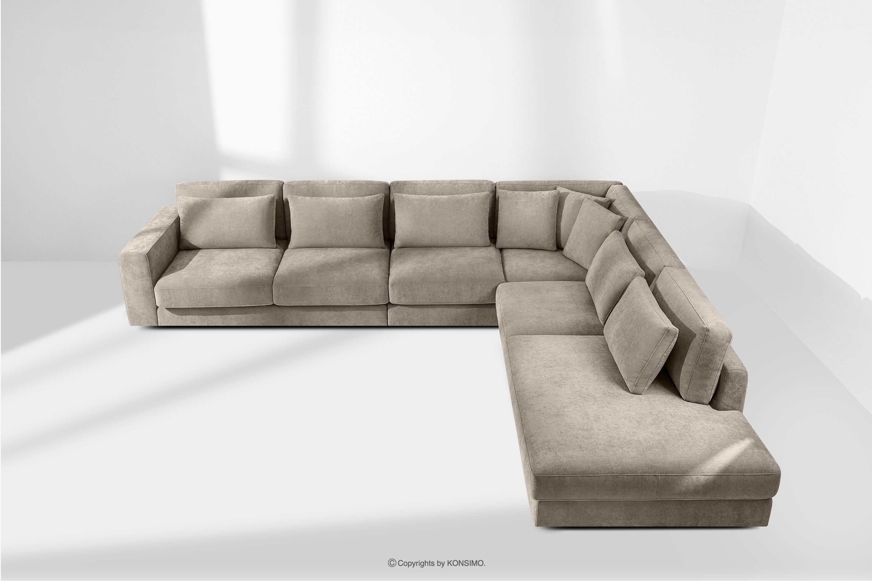 VERUS zobacz całą kolekcję Duży wygodny narożnik do salonu tkanina pleciona prawy szarobeżowy- kolor szarobeżowy
