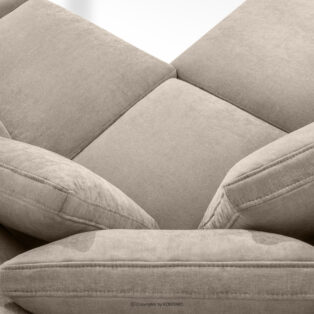 Jedną z kluczowych cech, wyróżniających ten narożnik na tle innych, jest jego unikalna ergonomia, uznawana za najbardziej komfortową formę siedzenia dostępną na rynku. Mebel ten został zaprojektowany z myślą o naturalnym kształcie ciała, zapewniając idealne podparcie w każdym punkcie. Innowacyjna regulacja głębokości siedzenia, możliwa dzięki zastosowaniu poduszek lędźwiowych, pozwala na indywidualne dopasowanie do preferencji użytkownika, co jest szczególnie ważne dla osób ceniących sobie wysoki poziom personalizacji i dbałość o zdrowy kręgosłup. Narożnik wyposażony jest w poduszki oparciowe, które są nie tylko wygodne, ale mogą również służyć jako praktyczne podłokietniki, zwiększając funkcjonalność mebla. Dodatkowo, zestaw uzupełniają dekoracyjne poduszki typu „jasiek”, których wypełnienie stanowi połączenie kulki silikonowej i granulatu piankowego. To właśnie to wypełnienie nadaje poduszkom przyjemną miękkość i sprężystość, a także sprawia, że są odporne na odkształcenia.
