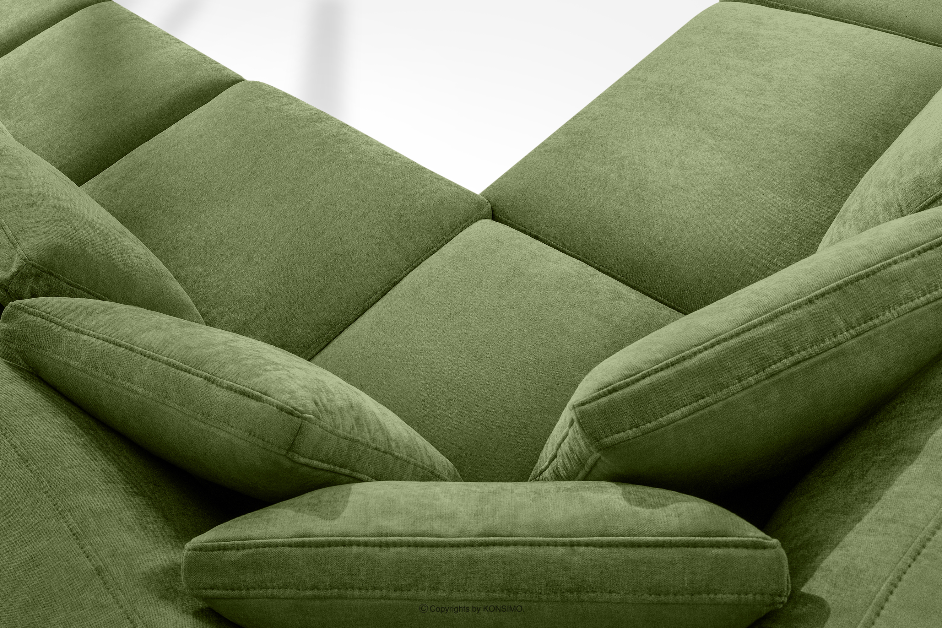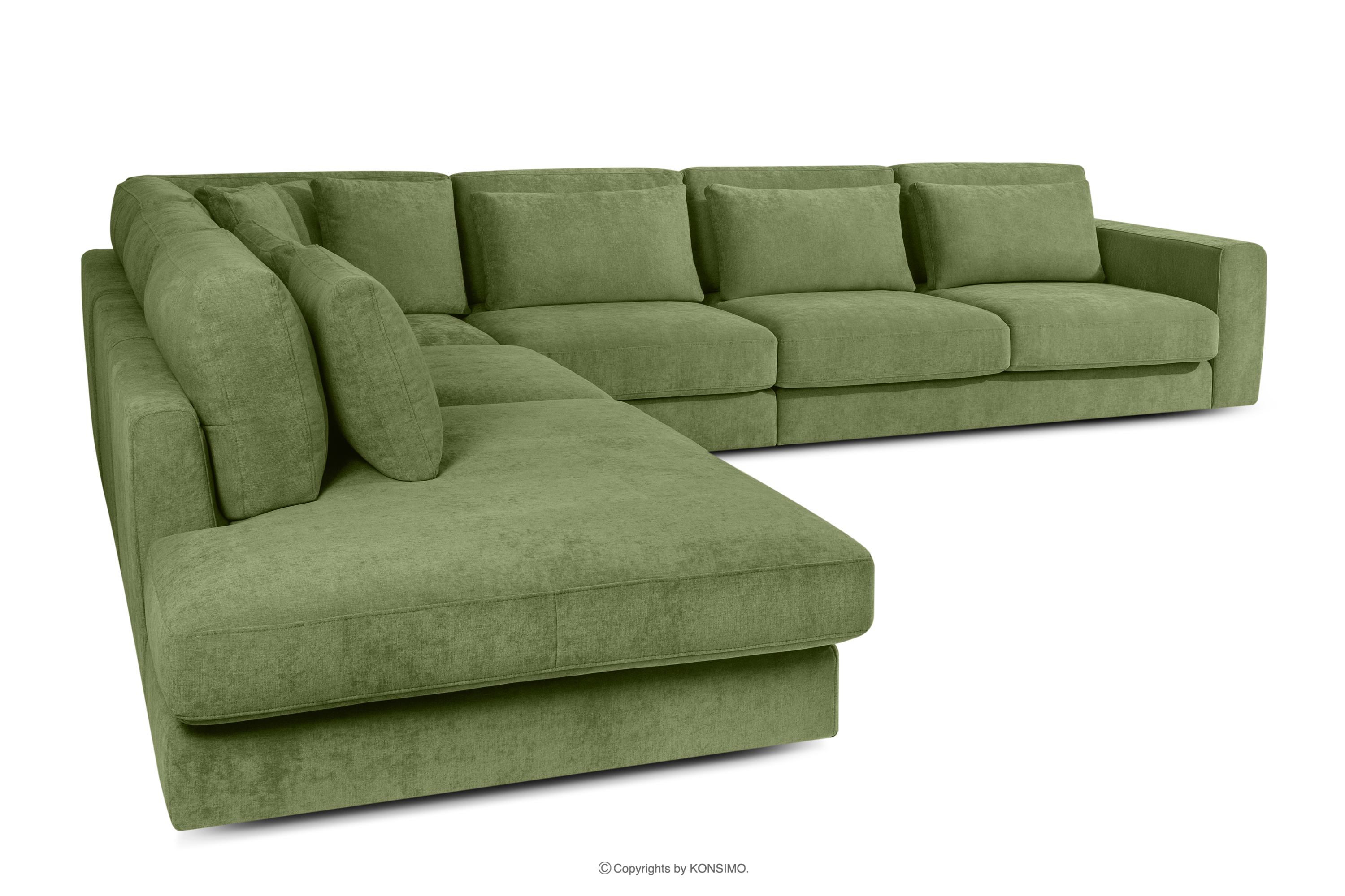 VERUS zobacz całą kolekcję Duży narożnik do salonu w tkaninie plecionej lewy zielony- kolor zielony